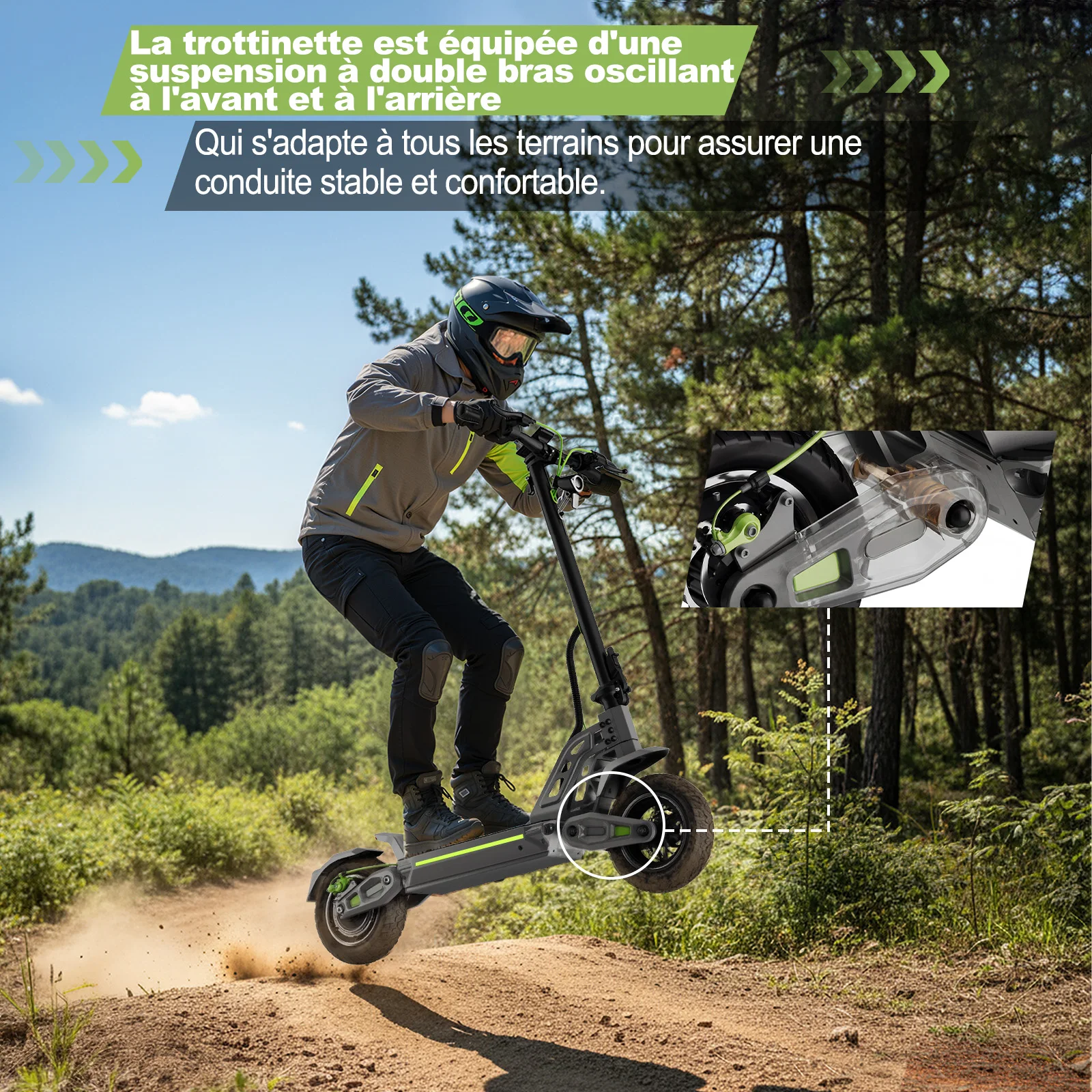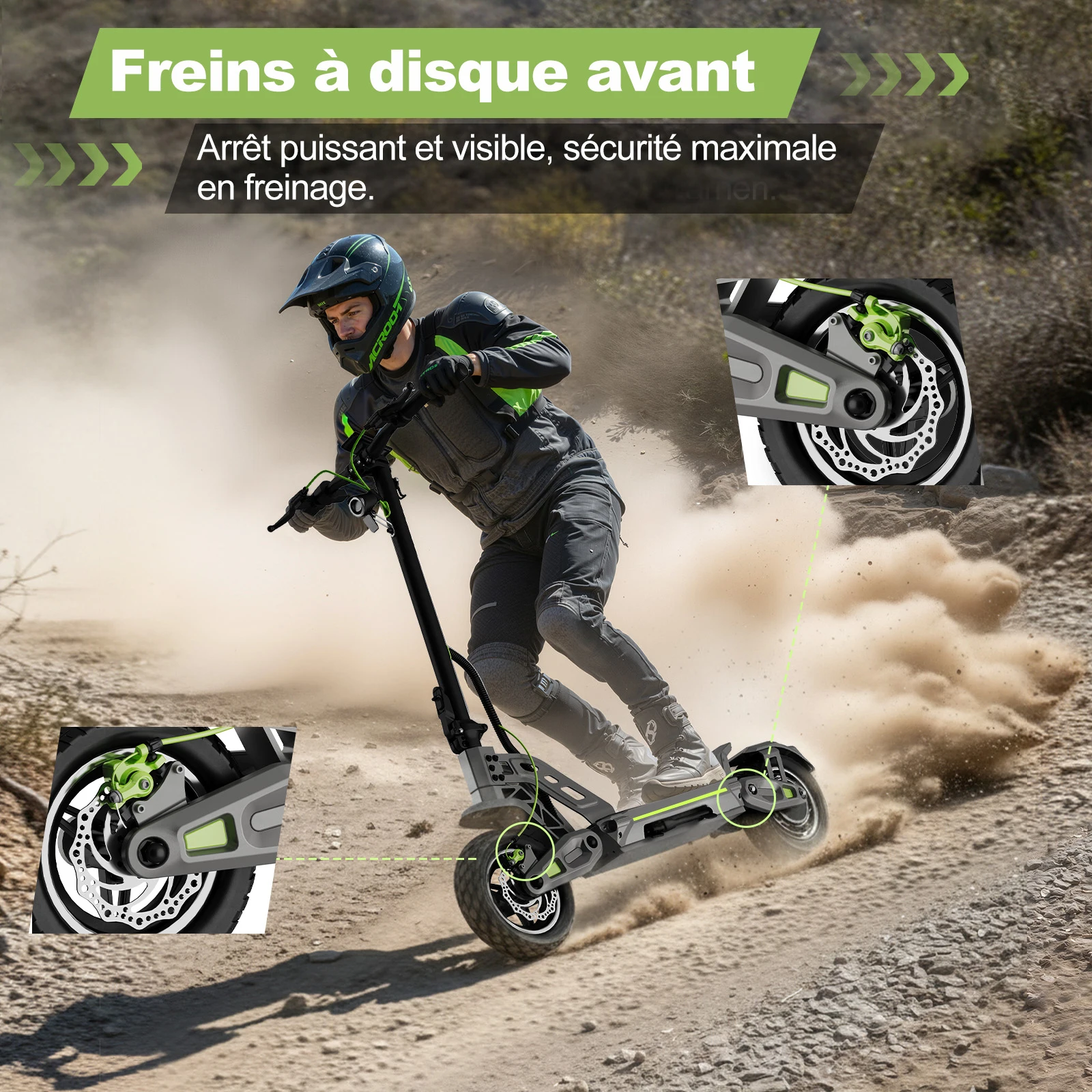 CaratteristicheFreni a disco anteriori e posterioriPer una potenza frenante affidabile, unita a…Sistema a doppia sospensioneper ridurre le vibrazioni e migliorare il comfort di guida.