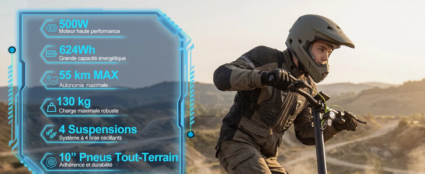 IlPneumatici fuoristrada da 10 polliciForniscono una presa salda e stabilità, adatti per strade cittadine, sentieri sterrati e condizioni leggermente fuoristrada.