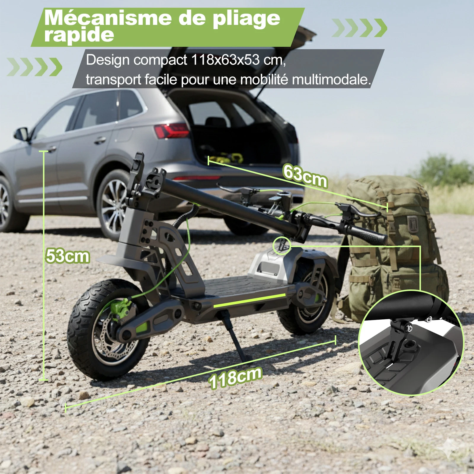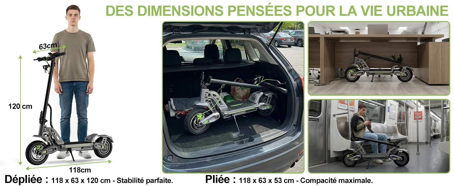 Progettato con untelaio pieghevoleper un facile stoccaggio e trasporto.IlDisplay LED montato al centromostra chiaramente la velocità, il livello della batteria e lo stato di guida.Peso netto:23,2 chilogrammi.