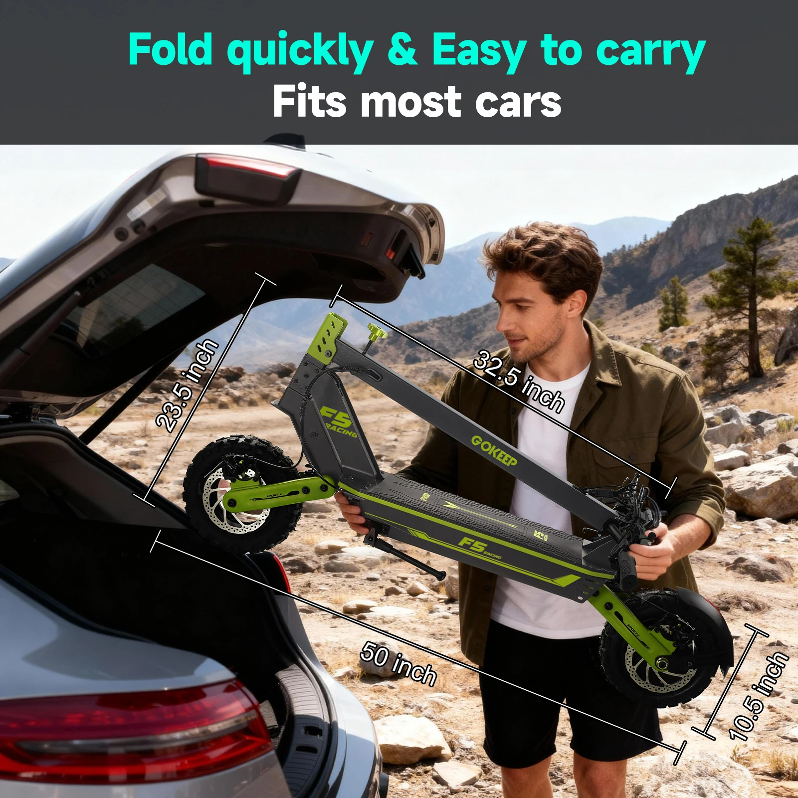 Gokeep F5 Monopattino Elettrico 1000W 52V 20Ah 11″ Fuoristrada Pieghevole per Pendolarismo con Doppia Sospensione Idraulica 70km 55km/h Rosso