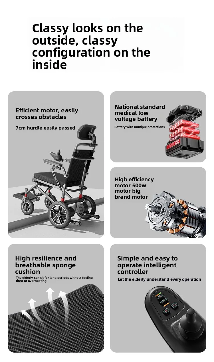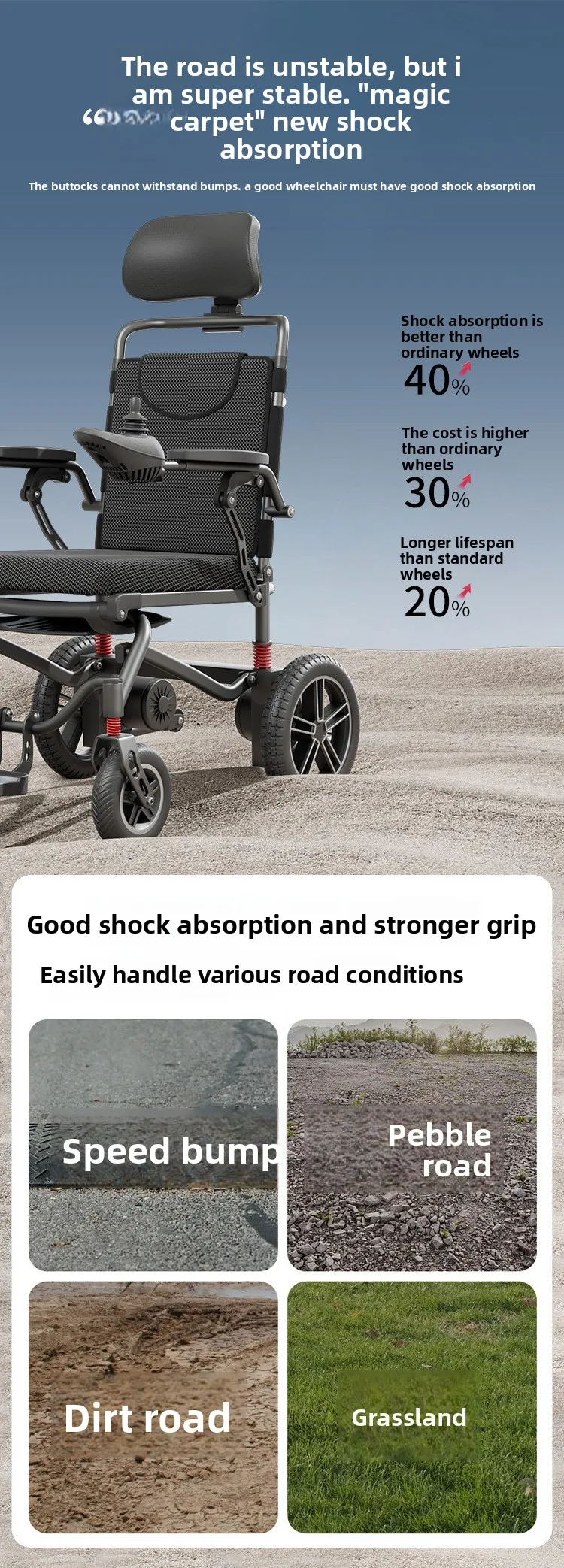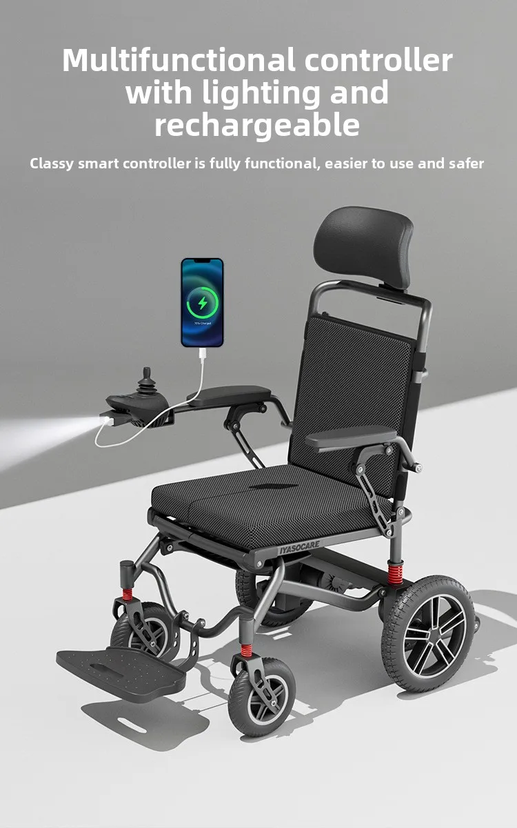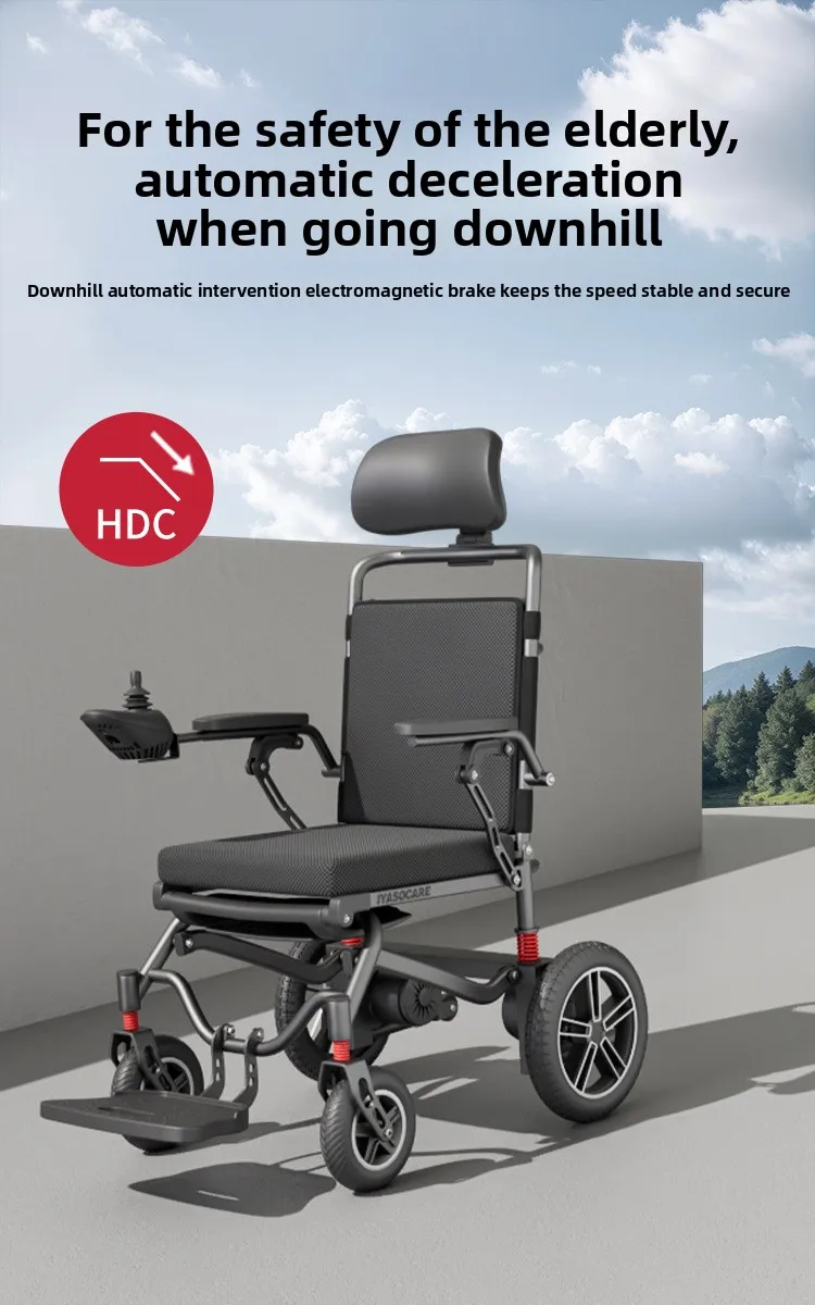 Nuova sedia a rotelle elettrica intelligente: ausilio da viaggio leggero pieghevole automatico specifico per anziani per disabili