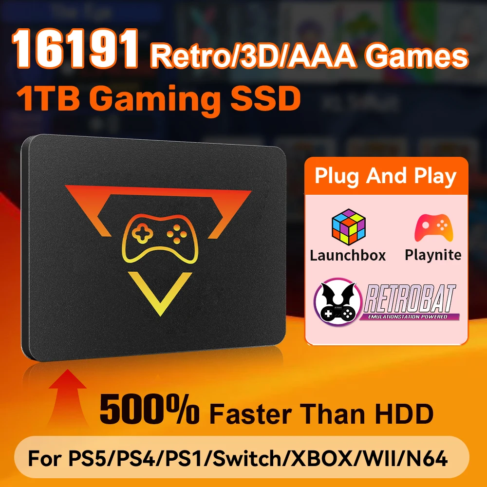 Playzone SSD da gioco da 1 TB con 16191 giochi 3 sistema in 1 emulatori SSD di gioco per PS5/PS4/Switch/XBOX/WII/N64 per PC Windows/laptop