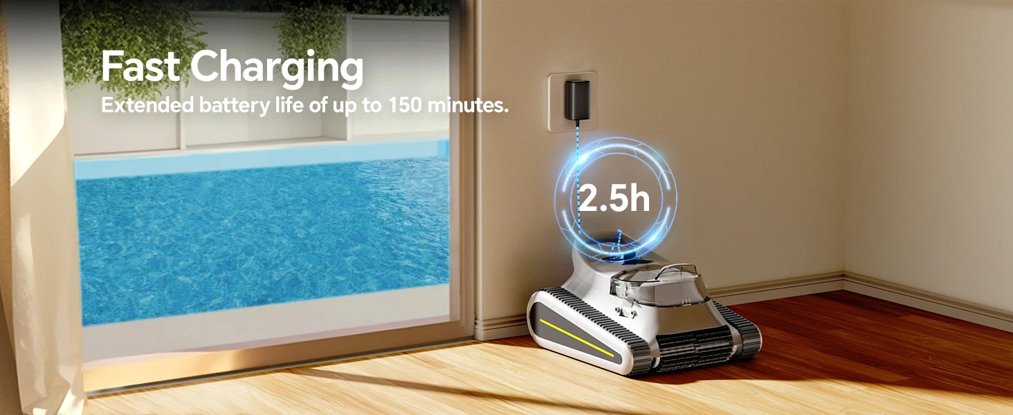 È arrivato molto velocemente e il robot funziona alla grande, arriva alle pareti senza problemi e pulisce completamente la piscina, la batteria dura più di 1,5 ore. Dà almeno un 2/3 in più di profondità alla mia piscina di 40m2 che è profonda 3 metri. Molto soddisfatto dell’acquisto.