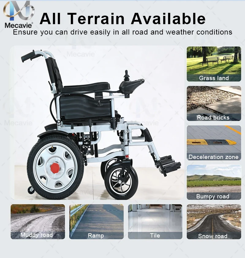 Ruota grande elettrica a quattro ruote Scooter completamente automatico intelligente Poltrona a rotelle elettrica pieghevole per anziani per persone disabili