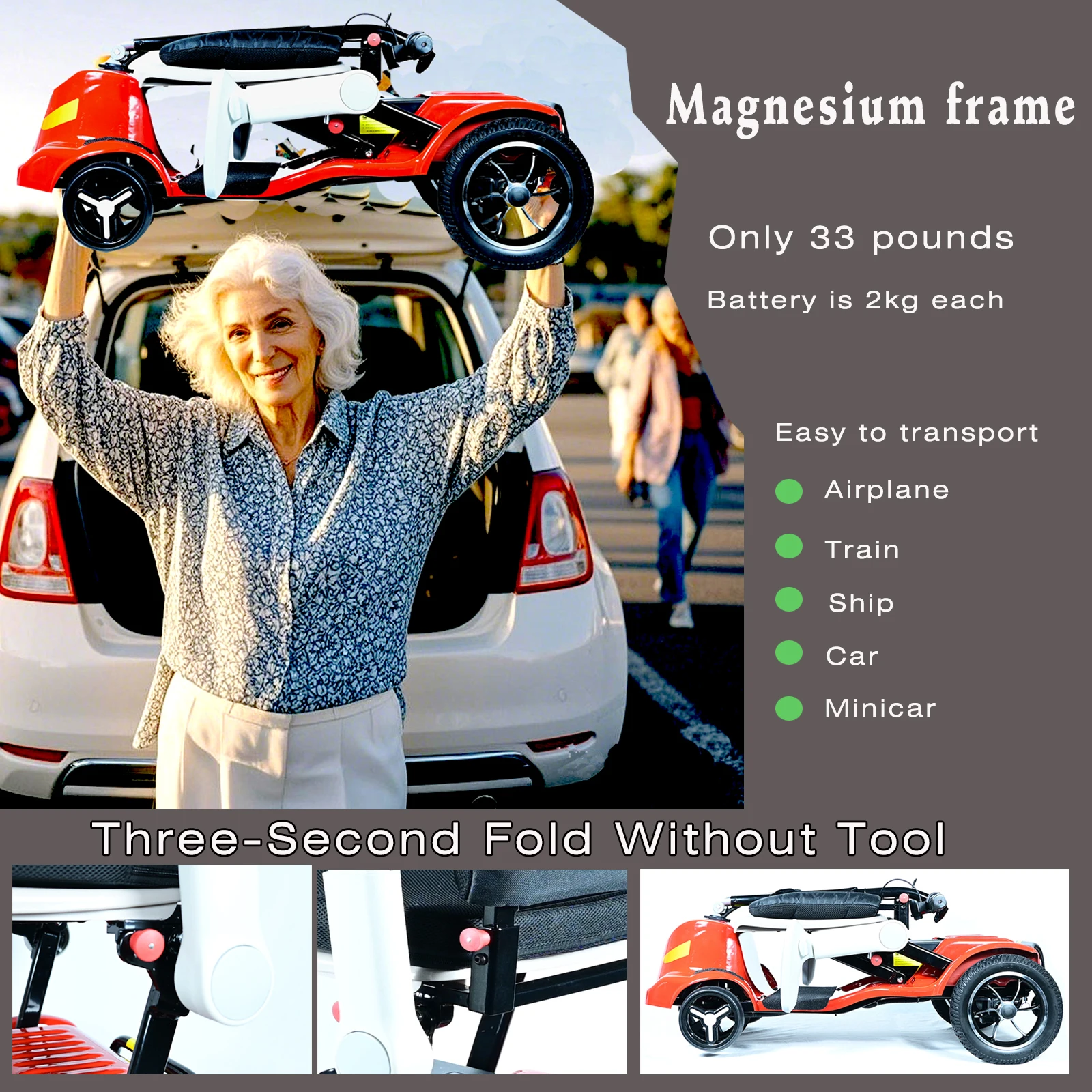 Scooter elettrico leggero da 15 kg in magnesio, trasporto in aeroporto consentito, scooter elettrico pieghevole e portatile