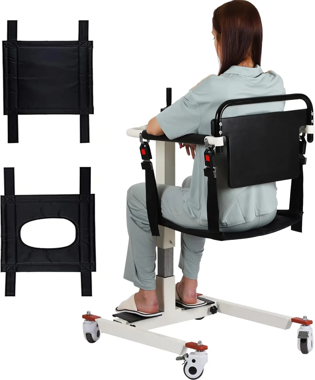 【La sicurezza prima di tutto】 La sicurezza dell’utente è la nostra priorità.Il sollevamento del paziente è progettato con uno schienale staccabile realizzato utilizzando la tecnologia di stampaggio della schiuma PU, che consente un comodo appoggio e fornisce un supporto ottimale per la vita e la schiena.4 silenzioso antiscivolo 360° ruote girevoli con freni, garantendo un trasporto sicuro.I braccioli morbidi e i poggiapiedi in gomma con struttura antiscivolo migliorano il comfort e la sicurezza.Questo dispositivo versatile può essere utilizzato come dispositivo di trasferimento del paziente, sedia a rotelle, comoda da comodino o sedia da doccia.