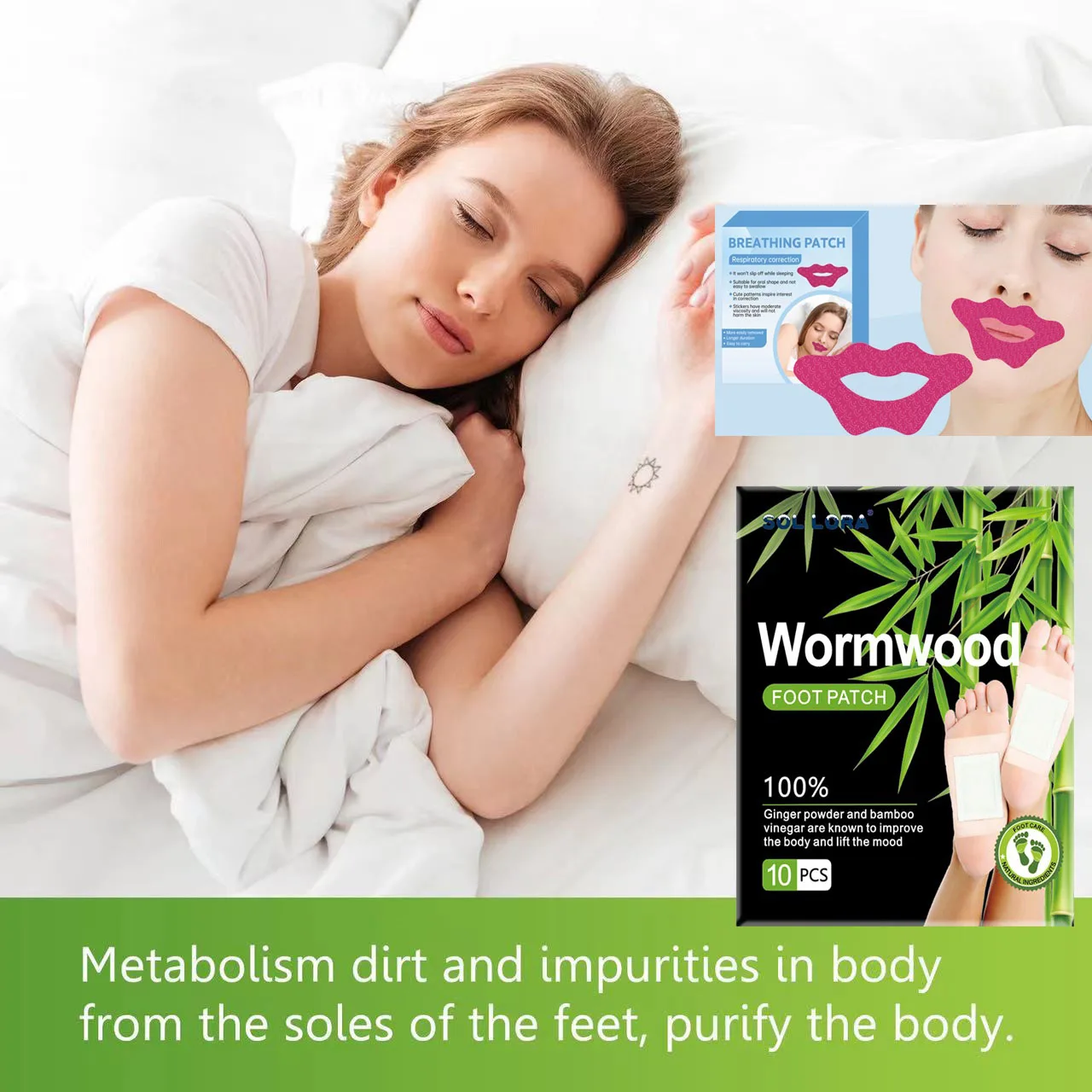 Set combinato di cerotti per l’aiuto al sonno Set di cerotti per il piede disintossicanti Allevia lo stress Promuovere il rilassamento Adesivo a bocca chiusa anti russare