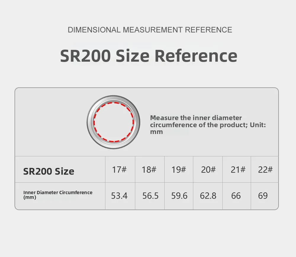 Disponibile nelle misure da 17 mm a 22 mm, l’SR200 può ospitare dita di varie dimensioni, garantendo una vestibilità comoda per tutti.