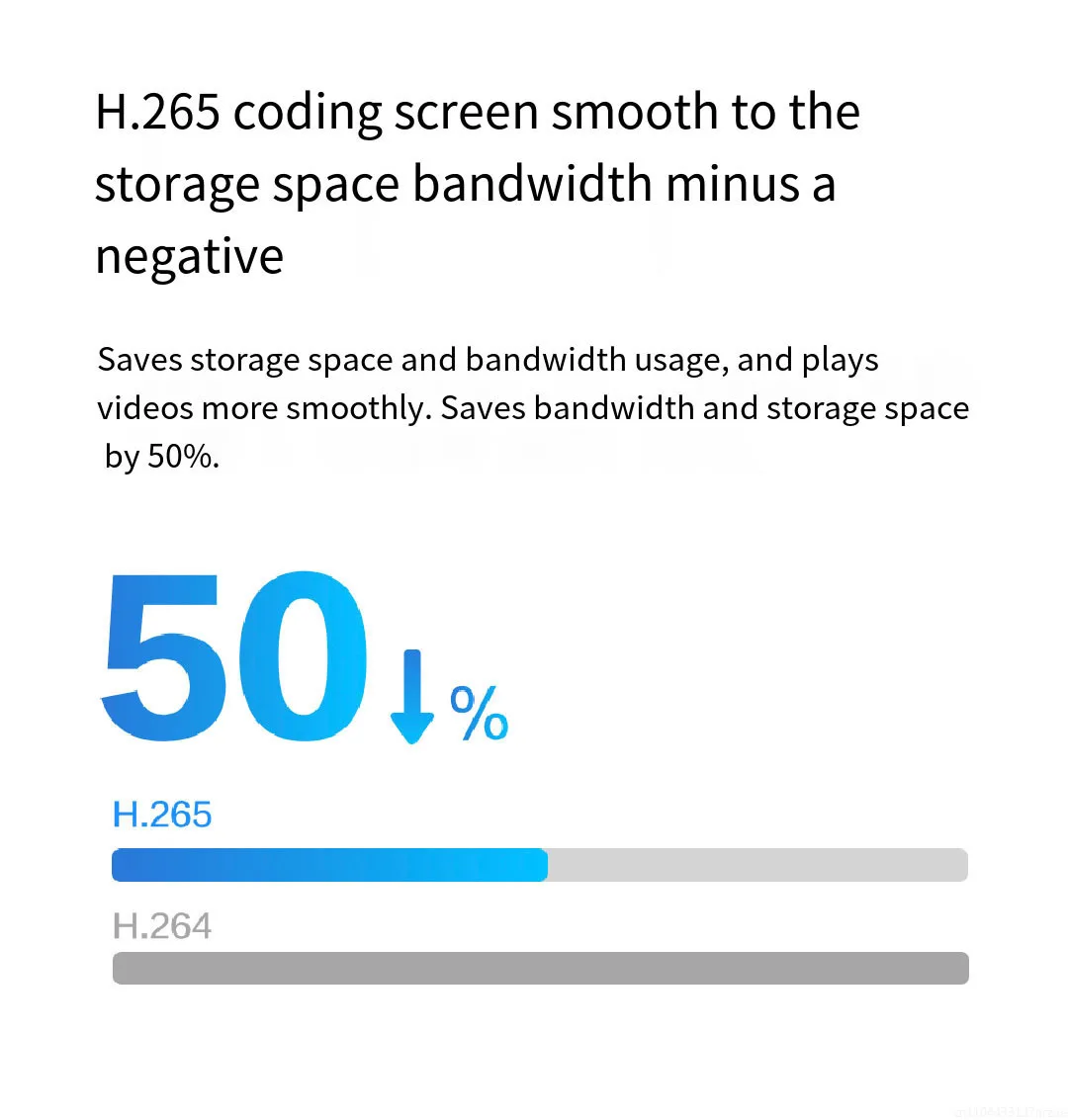 ● La codifica H.265 consente di risparmiare spazio di archiviazione e larghezza di banda, garantendo una riproduzione video più fluida.