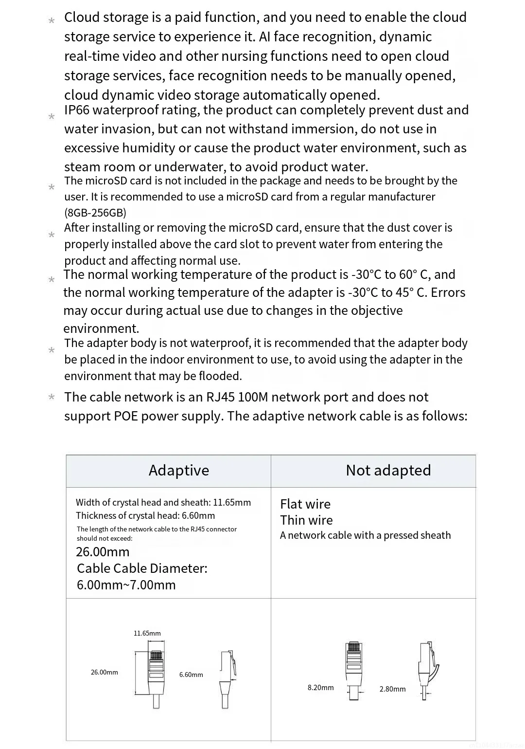 Accensione: inserire il cavo dell’alimentatore nella porta di alimentazione della fotocamera e la fotocamera si accenderà automaticamente.La spia luminosa sarà gialla fissa e sentirai un messaggio vocale che indica l’avvio riuscito.