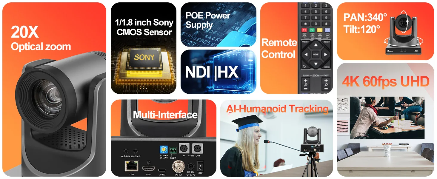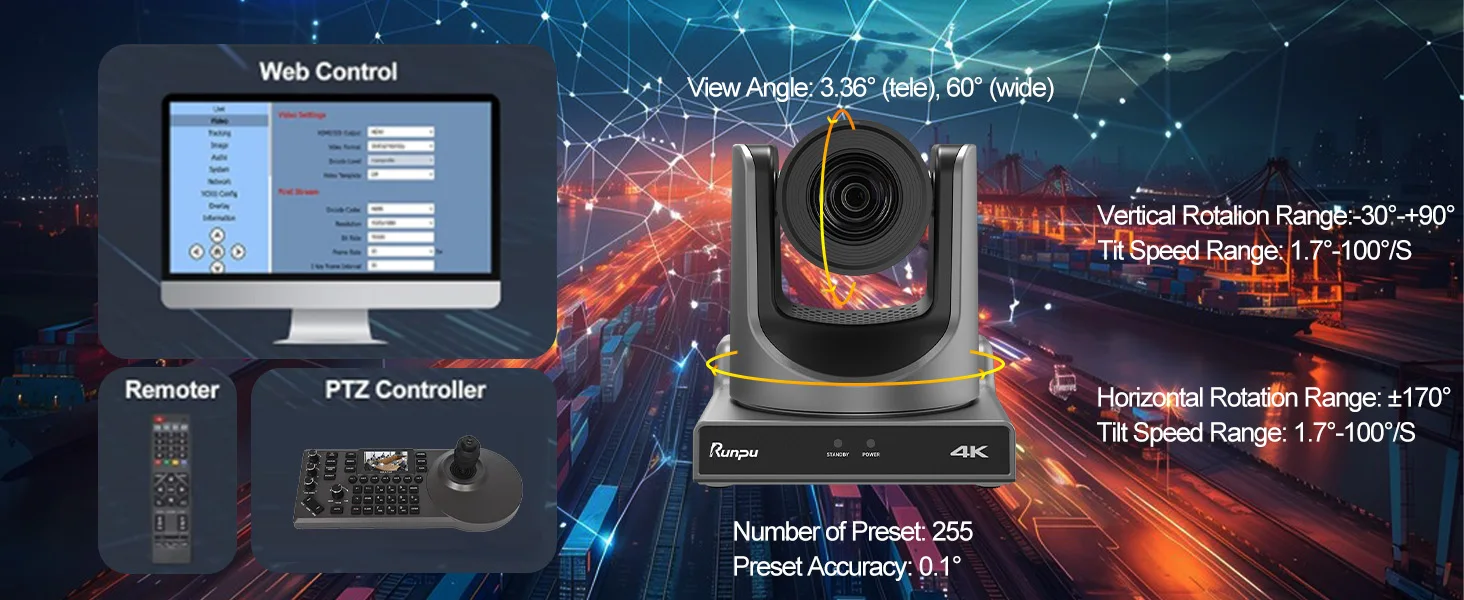 • Protocolli di controllo IP/IR/NDI/Pelco-D/Pelco-p/RS-232/RS-485/Visca