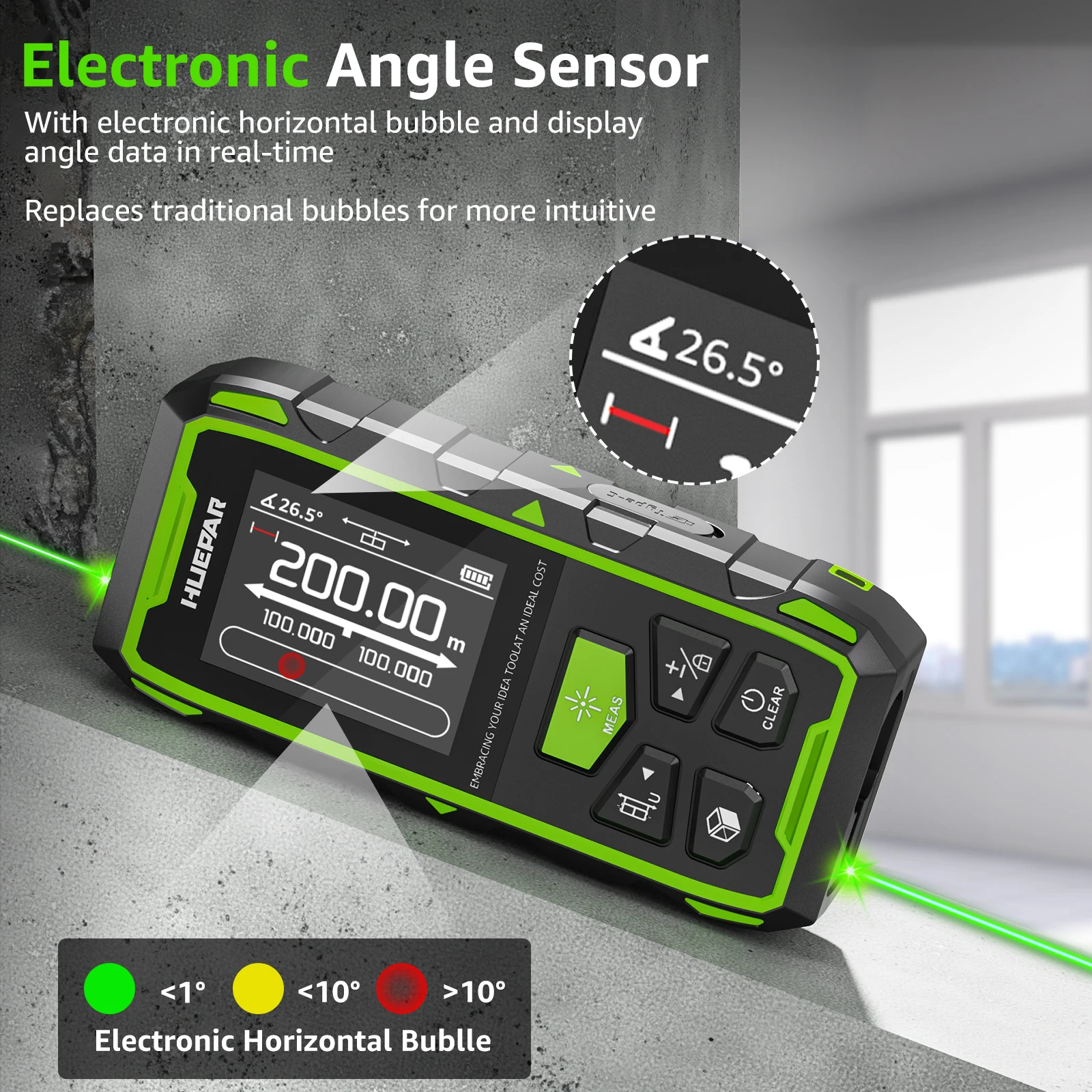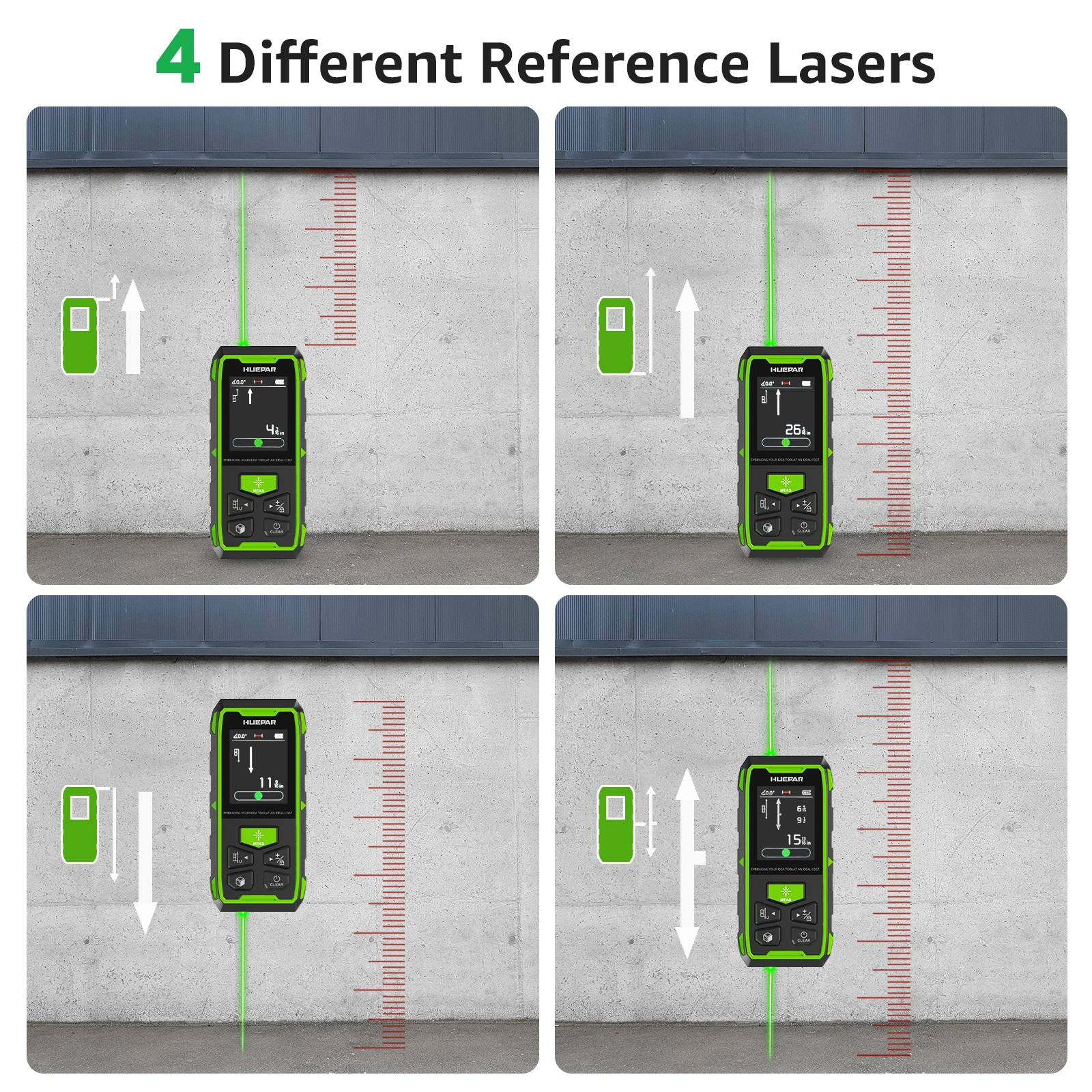 1 recensione per Telemetro laser doppio verde Huepr 60M/120M/100M/200M Misuratore laser con alta precisione e display LCD Strumento di misurazione della distanza laser
