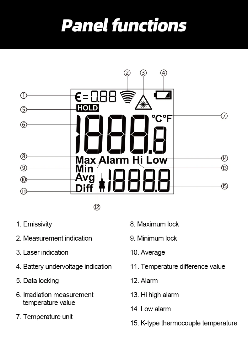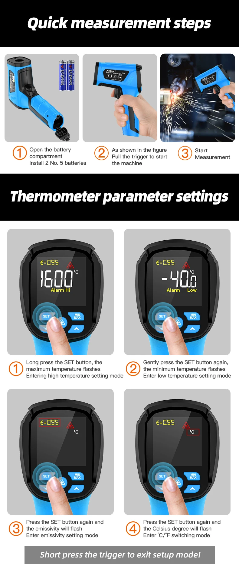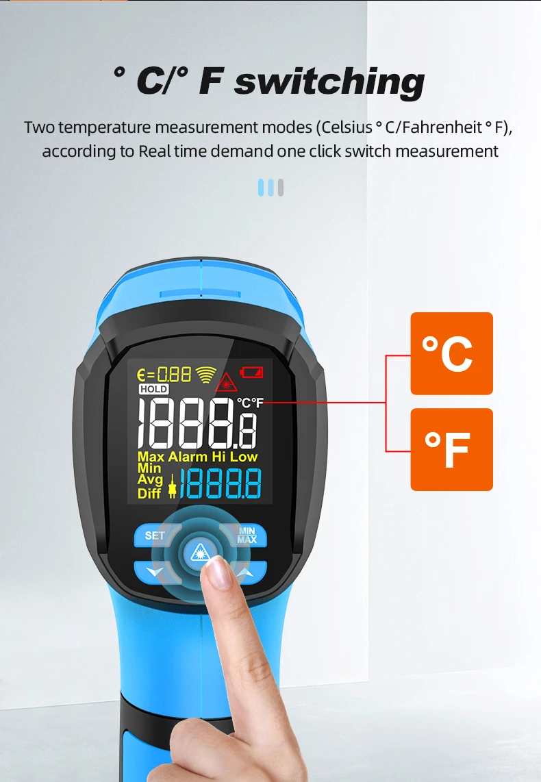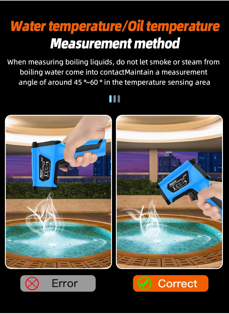 quando si misurano liquidi bollenti, non lasciare che il fumo o il vapore dell’acqua bollente entrino in contatto, mantenere un angolo di misurazione di circa 45 ~ 60 nell’area di rilevamento della temperatura