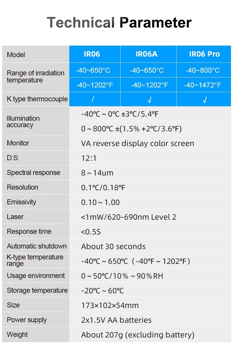IR06Pro:-40-800°C, sonda di tipo K, schermo inverso VA