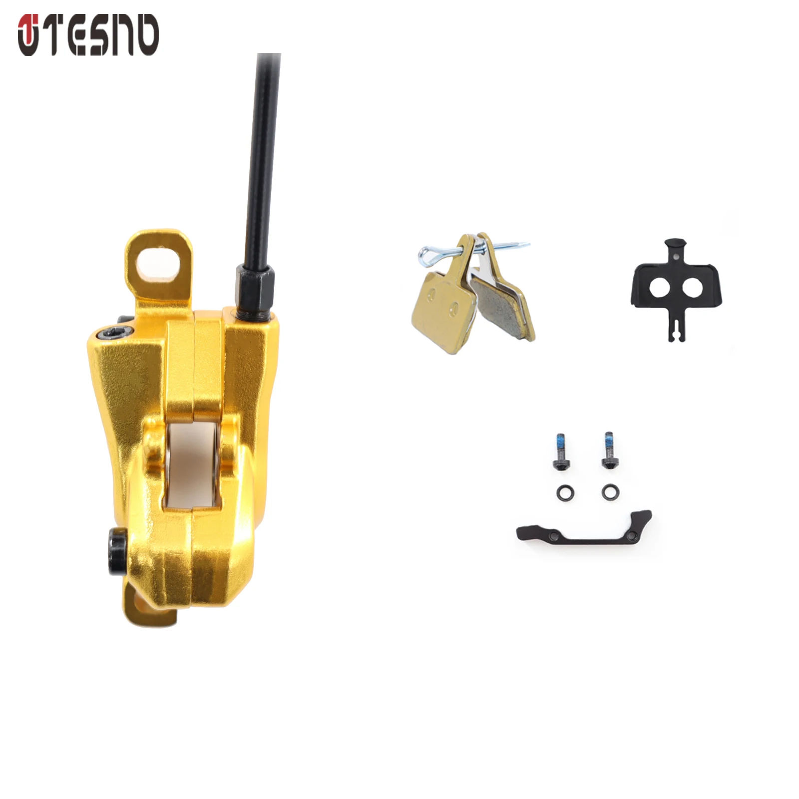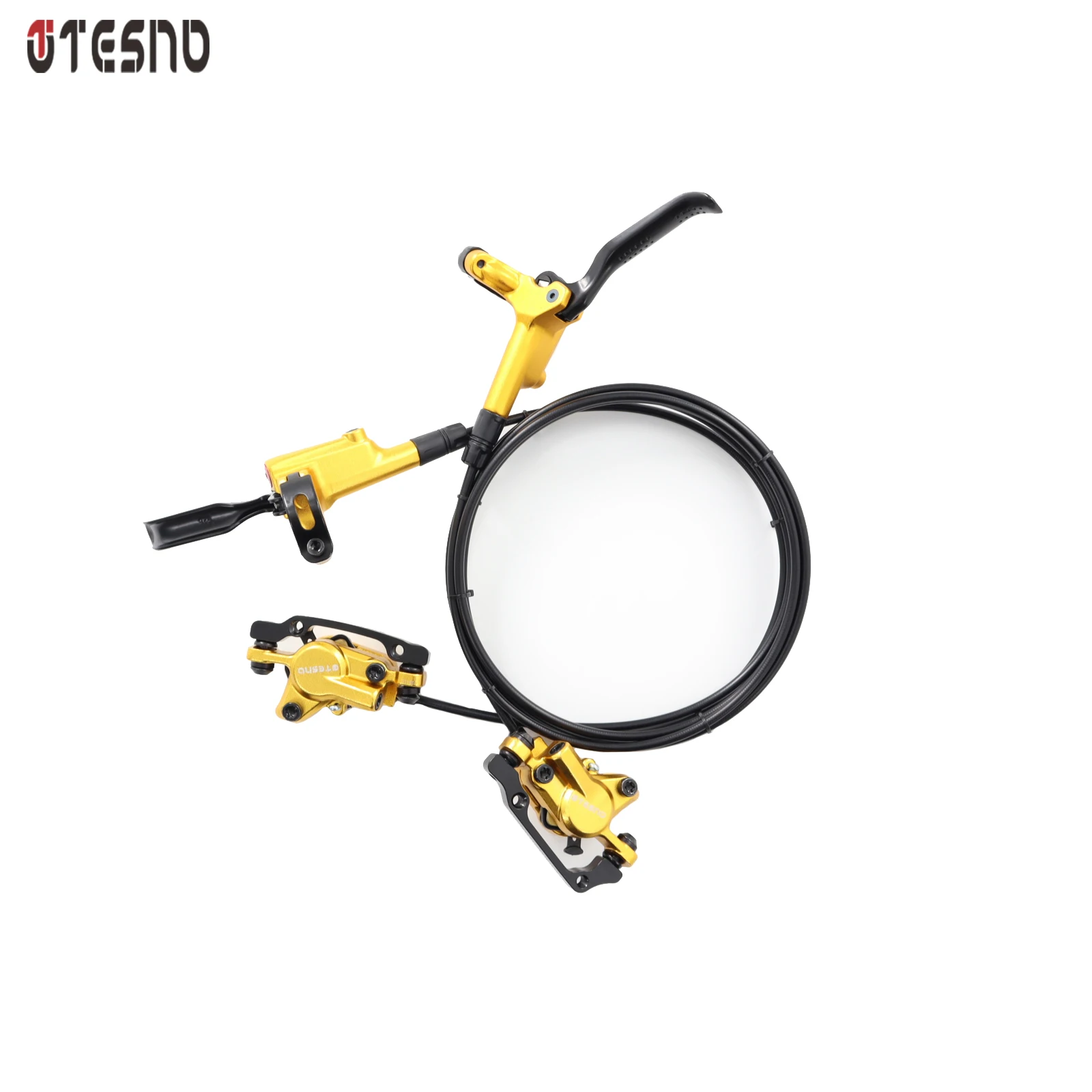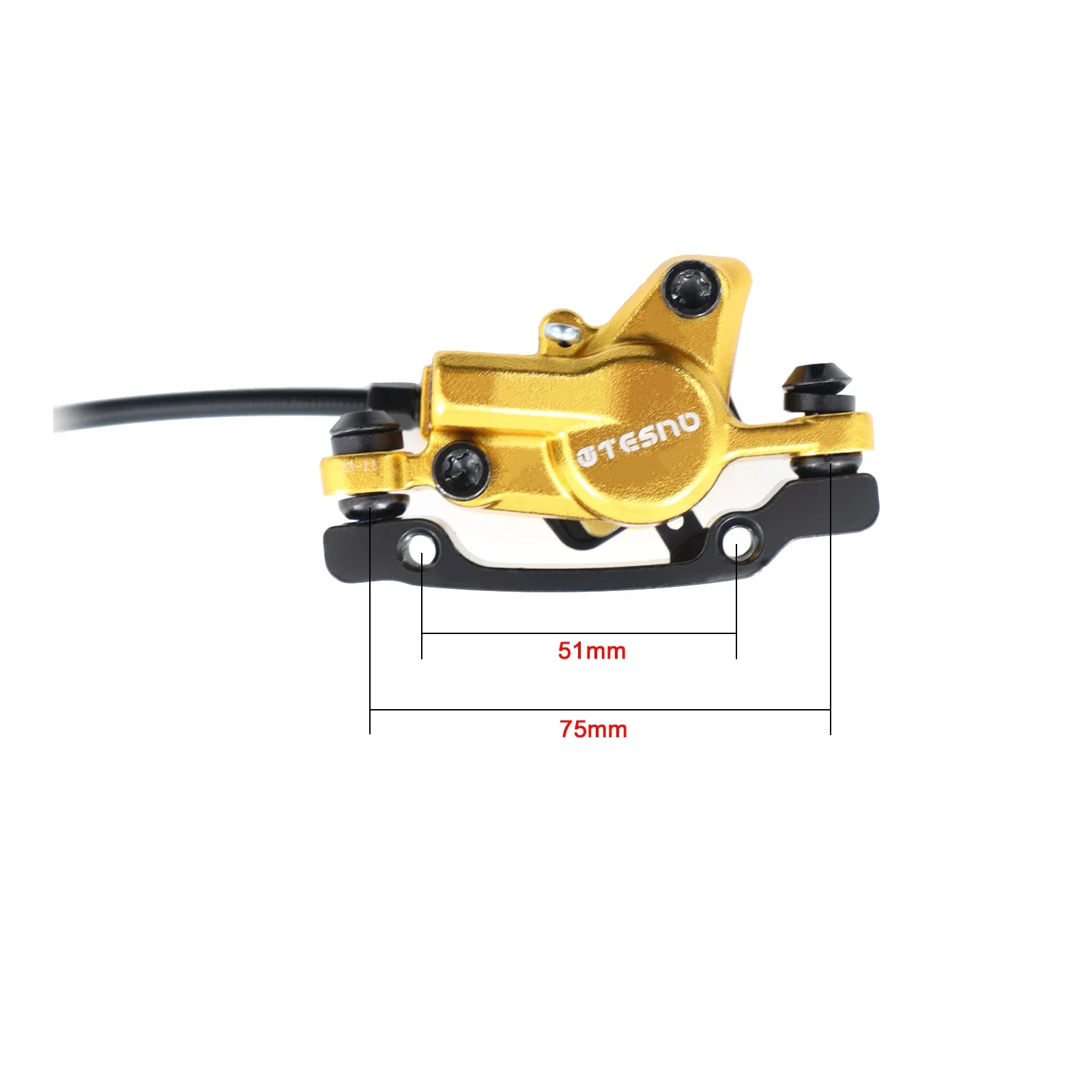 Nome del prodotto: TESNO Freno a disco idraulico per bici 2 pistoni Parti MTB Accessori per biciclette Pinza rotore da 160 mm Set freno olio anteriore posteriore 1000/1800 mm