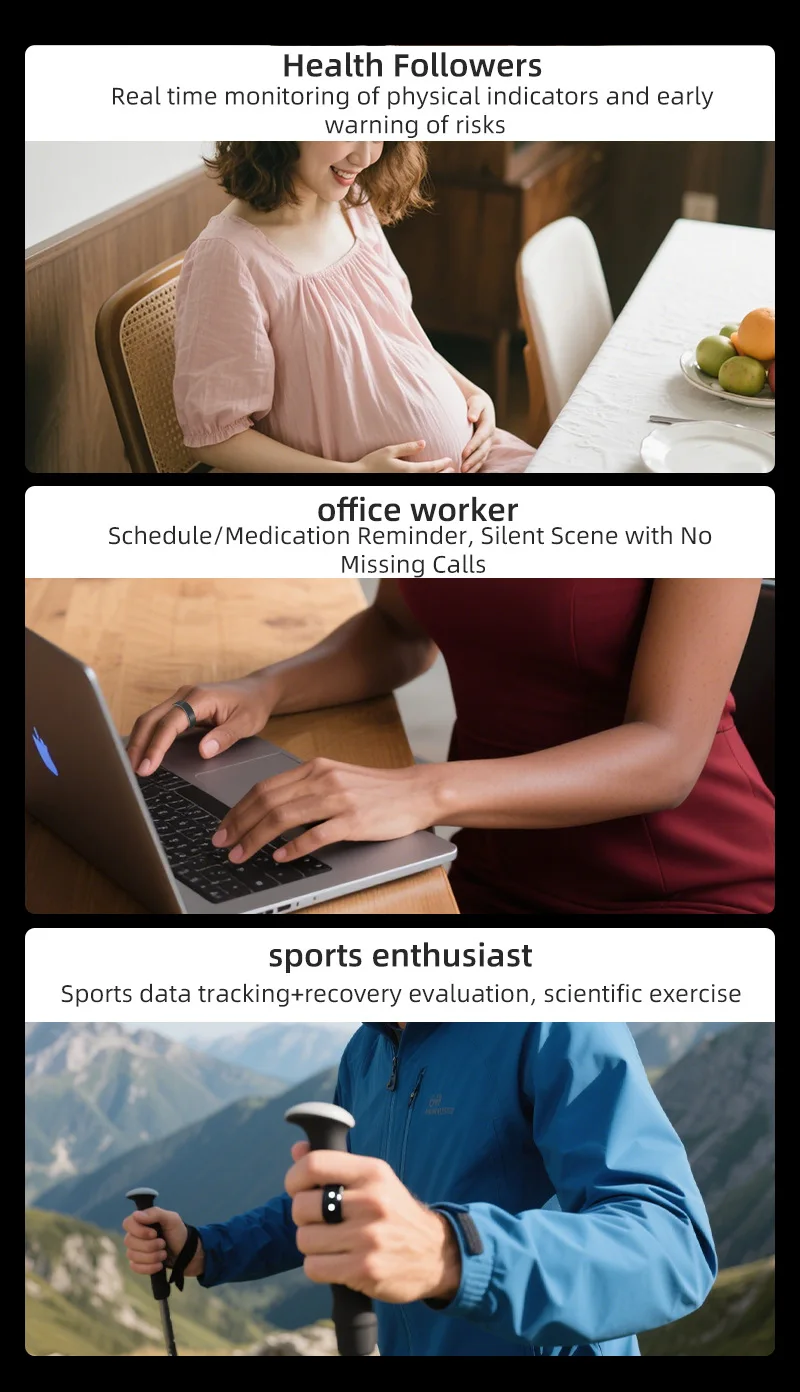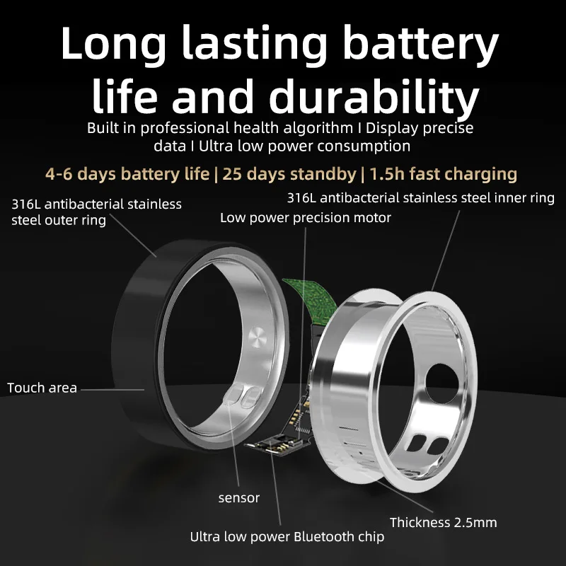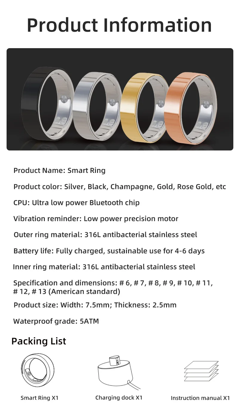 Con sei diversi indicatori di dita, questo anello intelligente offre opzioni di usura flessibili, adatte a vari stili di vita e preferenze.