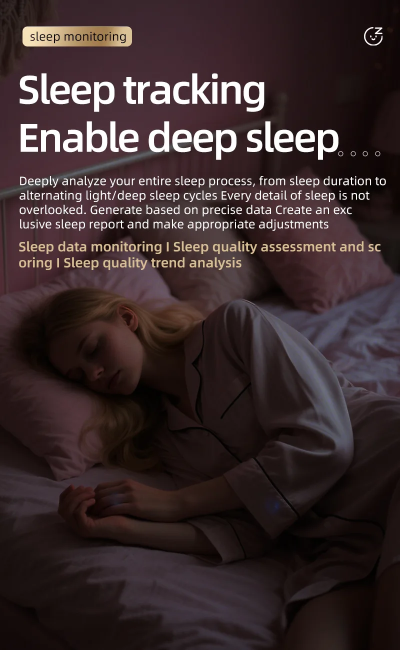 TM22 Smart Health Ring offre un monitoraggio completo tra cui frequenza cardiaca, ossigeno nel sangue, qualità del sonno e altro ancora, garantendo che la salute generale sia ben gestita.