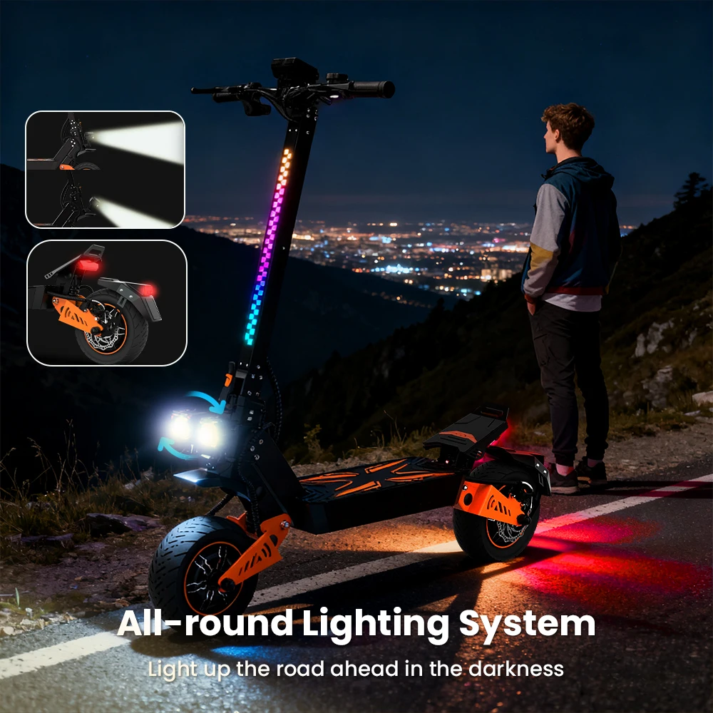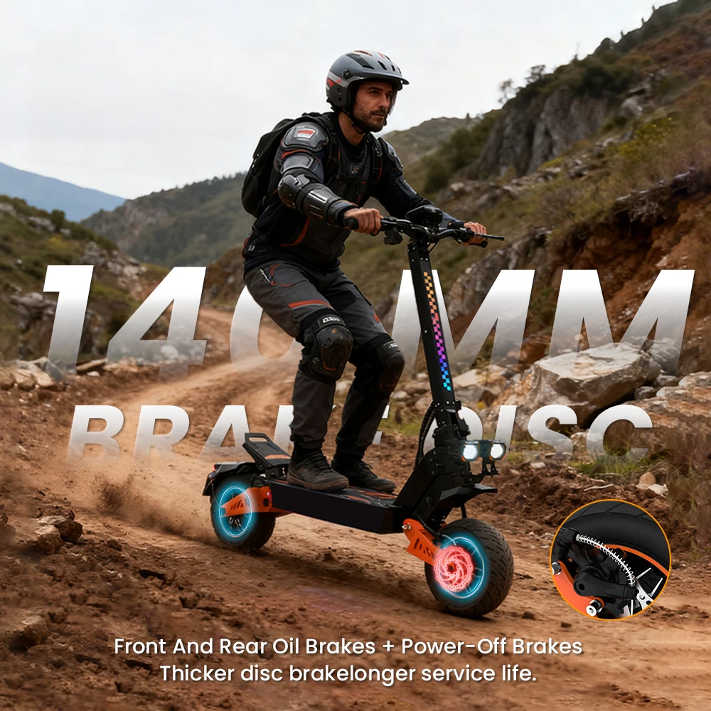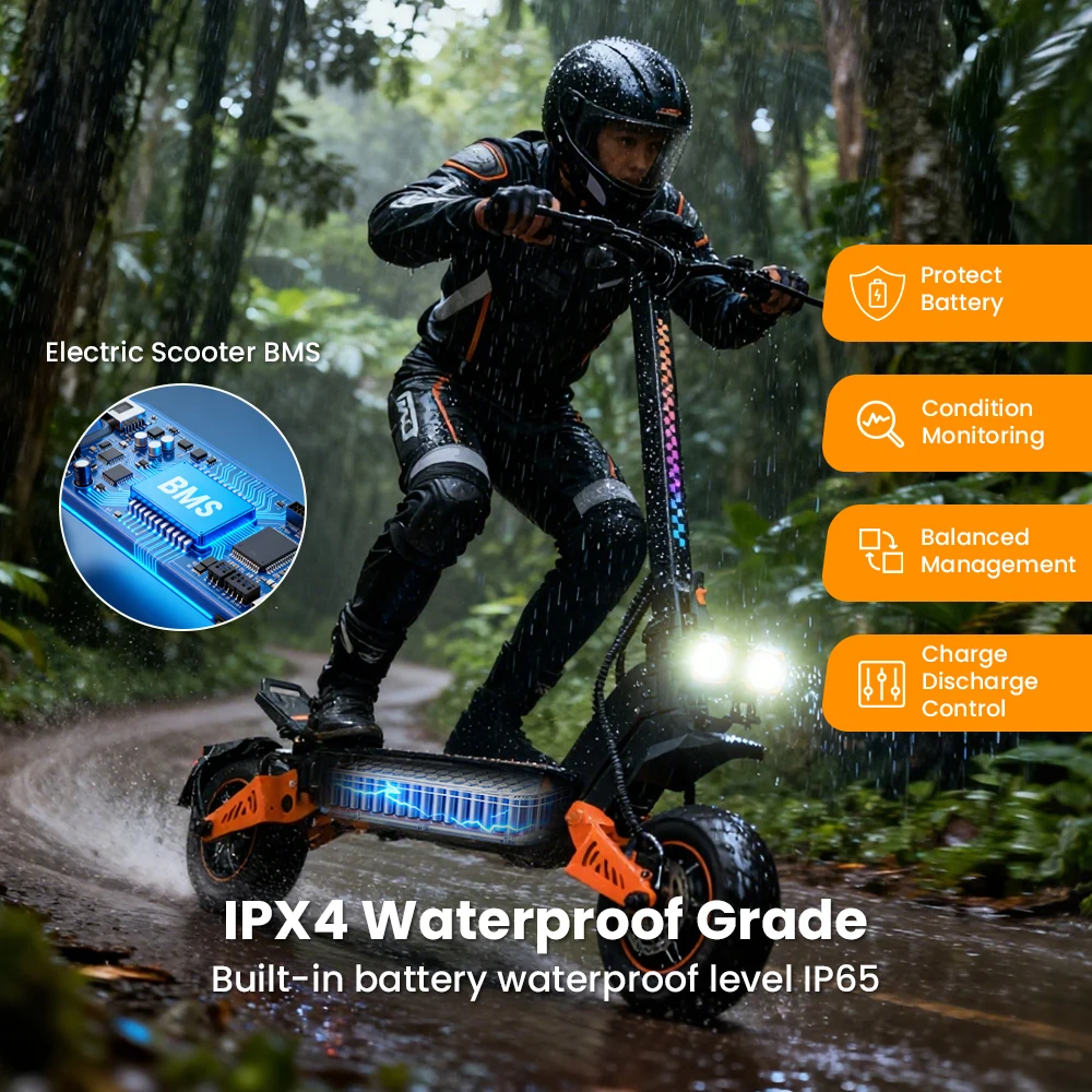 4 modalità di velocità regolabili offrono agli adulti prestazioni ottimali in ambienti urbani e fuoristradaLo schermo LCD intuitivo dello scooter elettrico fuoristrada visualizza dati in tempo reale come velocità, livello della batteria e modalità di guida, tenendoti informato e sicuroGrado di impermeabilità IPX4, grado di impermeabilità della batteria integrata IP65TF5 PRO Master è uno scooter elettrico per adulti dotato di due motori da 1200 W che forniscono una potenza eccezionaleIl sistema di assorbimento degli urti idraulico anteriore e posteriore assorbe facilmente vibrazioni e urti e la capacità di peso massima è fino a 150 kg, così puoi goderti un’esperienza di guida fluida e stabile su tutti i tipi di superficiLo scooter elettrico TF5 PRO per adulti è dotato di ampi pneumatici fuoristrada da 11 pollici, che ti consentono di conquistare qualsiasi terreno con facilità.Batteria da 48 V 18,2 Ah, lo scooter elettrico per adulti TF5 PRO offre una portata impressionante fino a 60 km con una singola carica, ideale per viaggi lunghi senza preoccuparsi dell’autonomia.Dischi freno da 140 mm per una distanza di frenata più sicuraSistema di illuminazione a tutto tondo Illumina la strada davanti al buioDoppie porte di ricarica Risparmia efficacemente tempo di ricarica