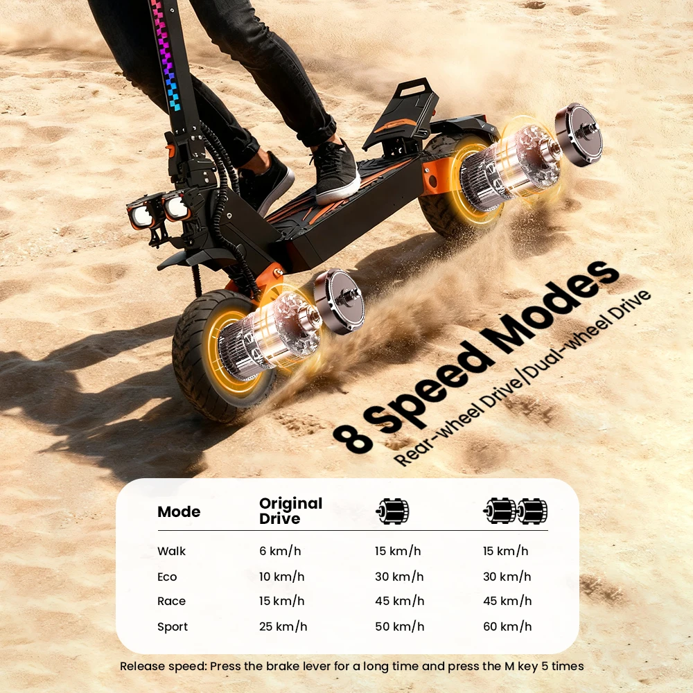 Potente motore da 2×1200 W: conquista senza sforzo 35° pendii con trasmissione variabile a 4 velocità, progettate per soddisfare le diverse esigenze nei limiti legali di velocità.Sblocca le capacità di velocità massima.
