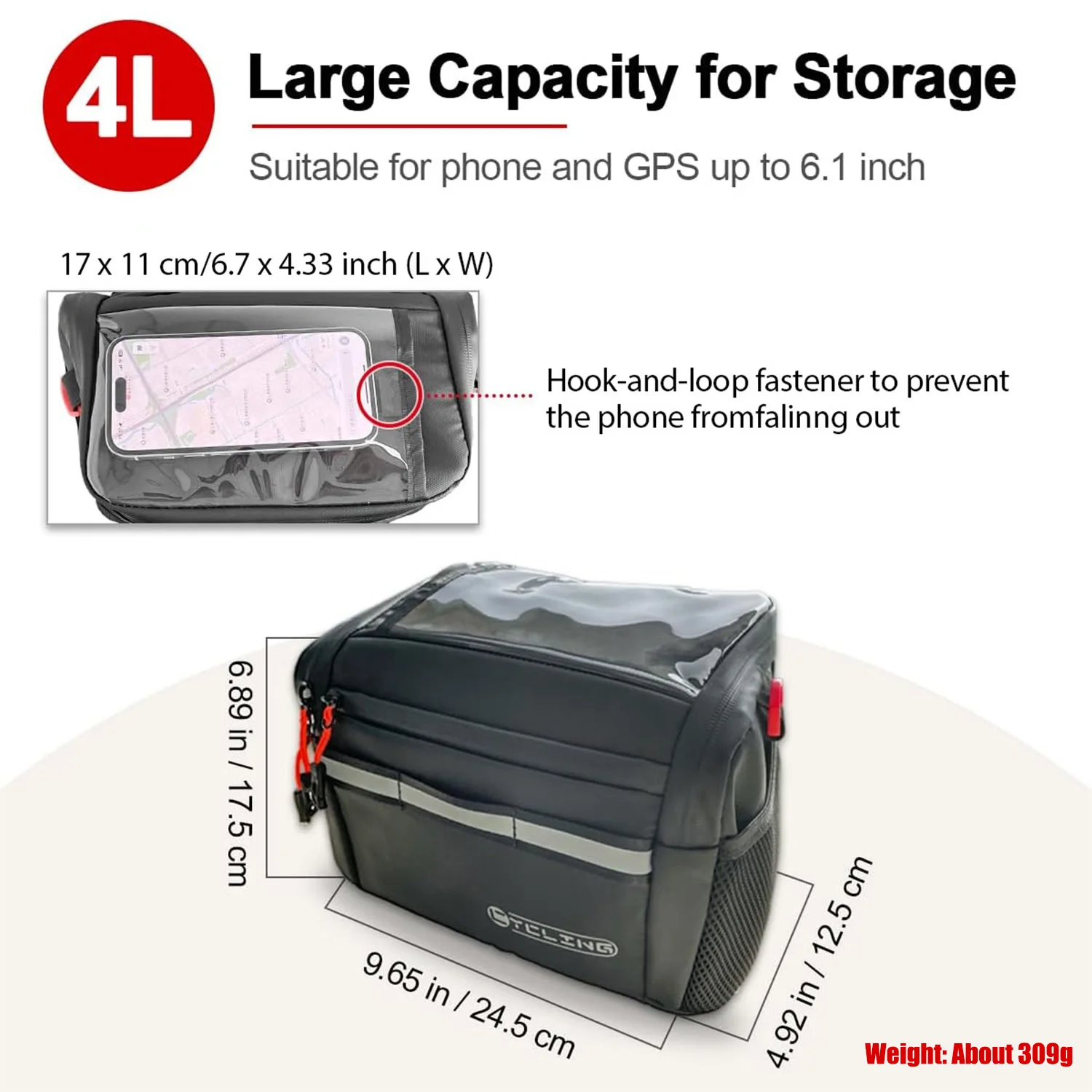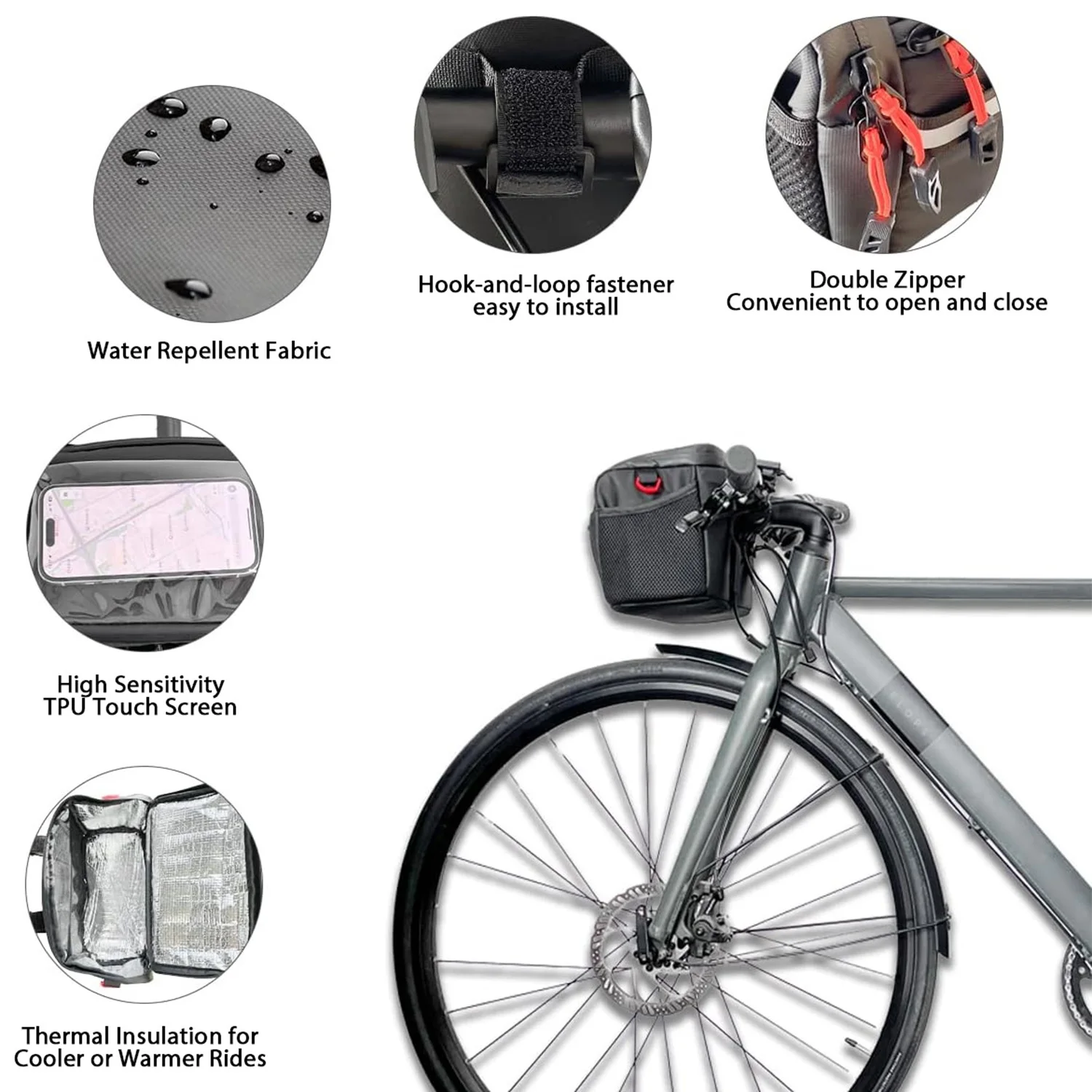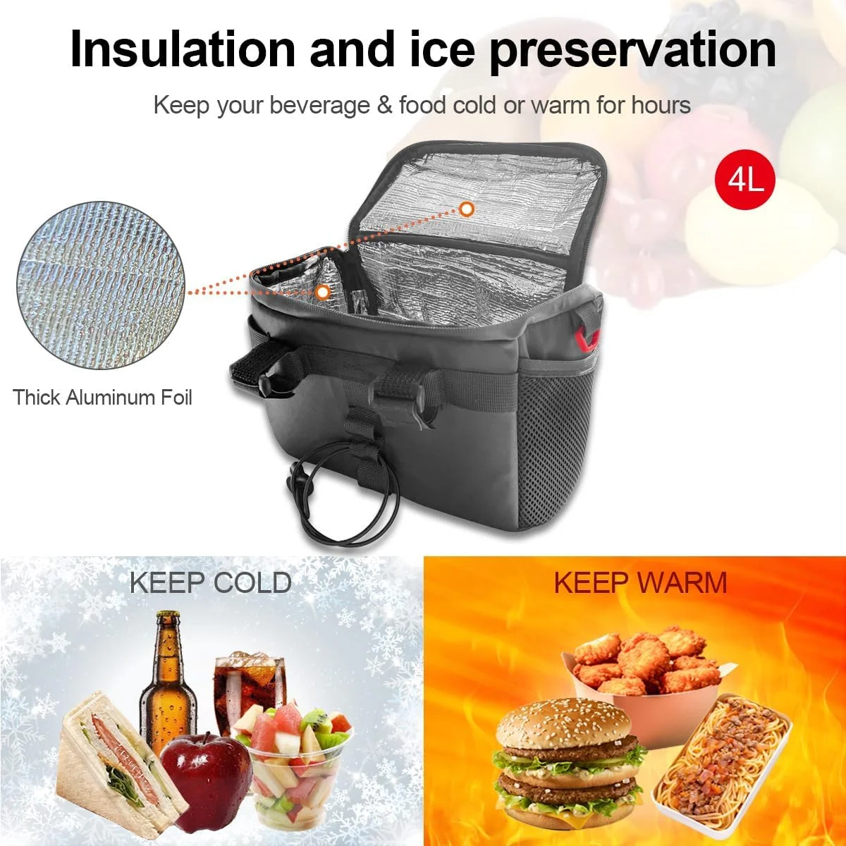 Toptrek Borsa da manubrio per bicicletta da 4 litri Borsa da bici invernale isolata di grande capacità per riporre l’auto Mantieni caldo il pacchetto di cestini Accessori per il ciclismo