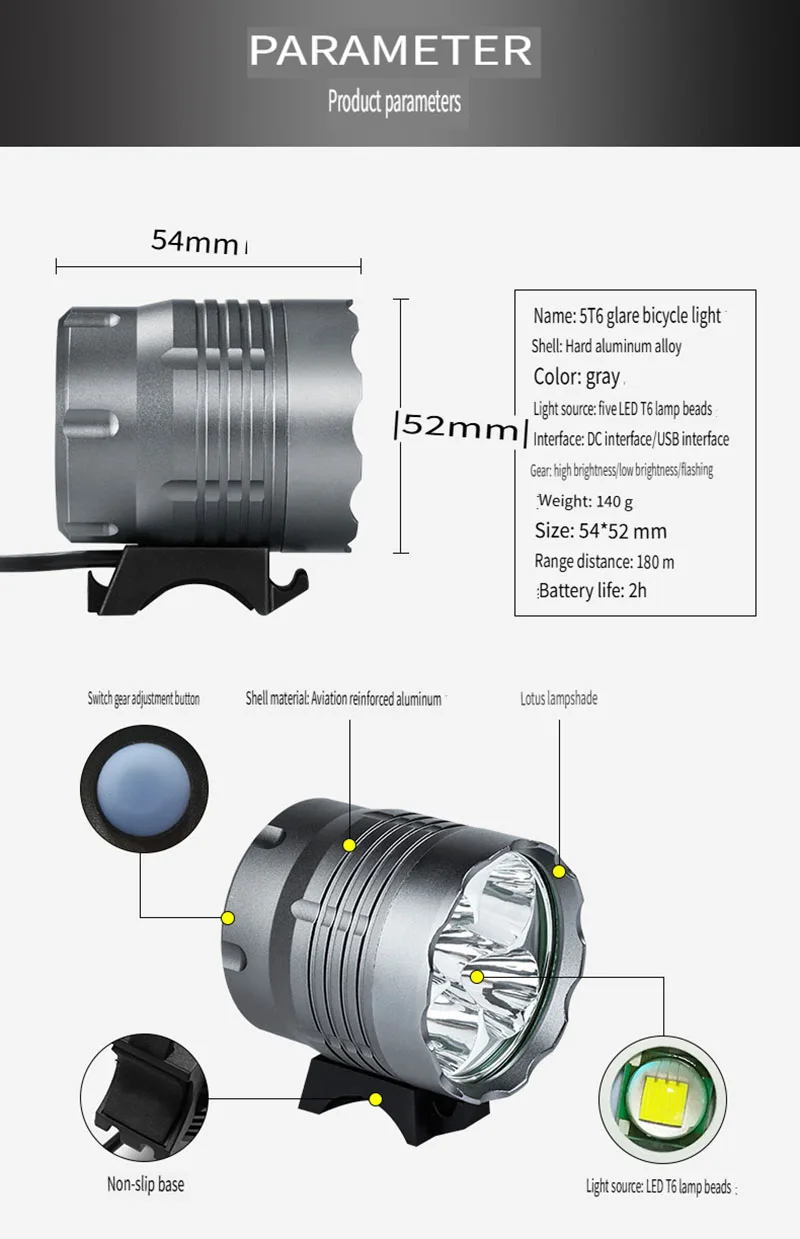 1.Nome prodotto: lampada per bicicletta a 5 lampade
