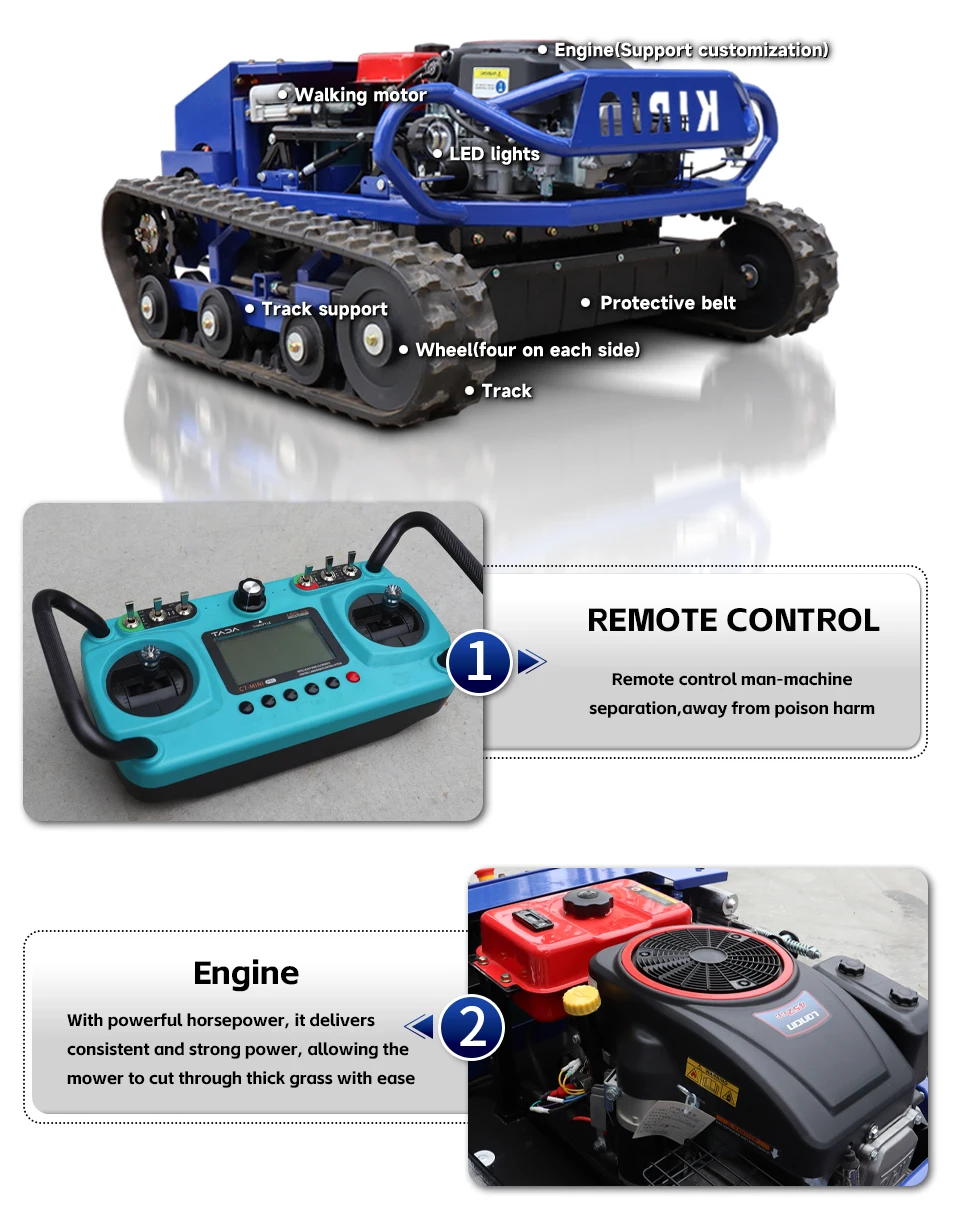Velocità di camminata 5 km/h, efficienza di taglio fino a 3800㎡/H, migliora notevolmente l’efficienza del lavoro e riduce i costi di tempo.