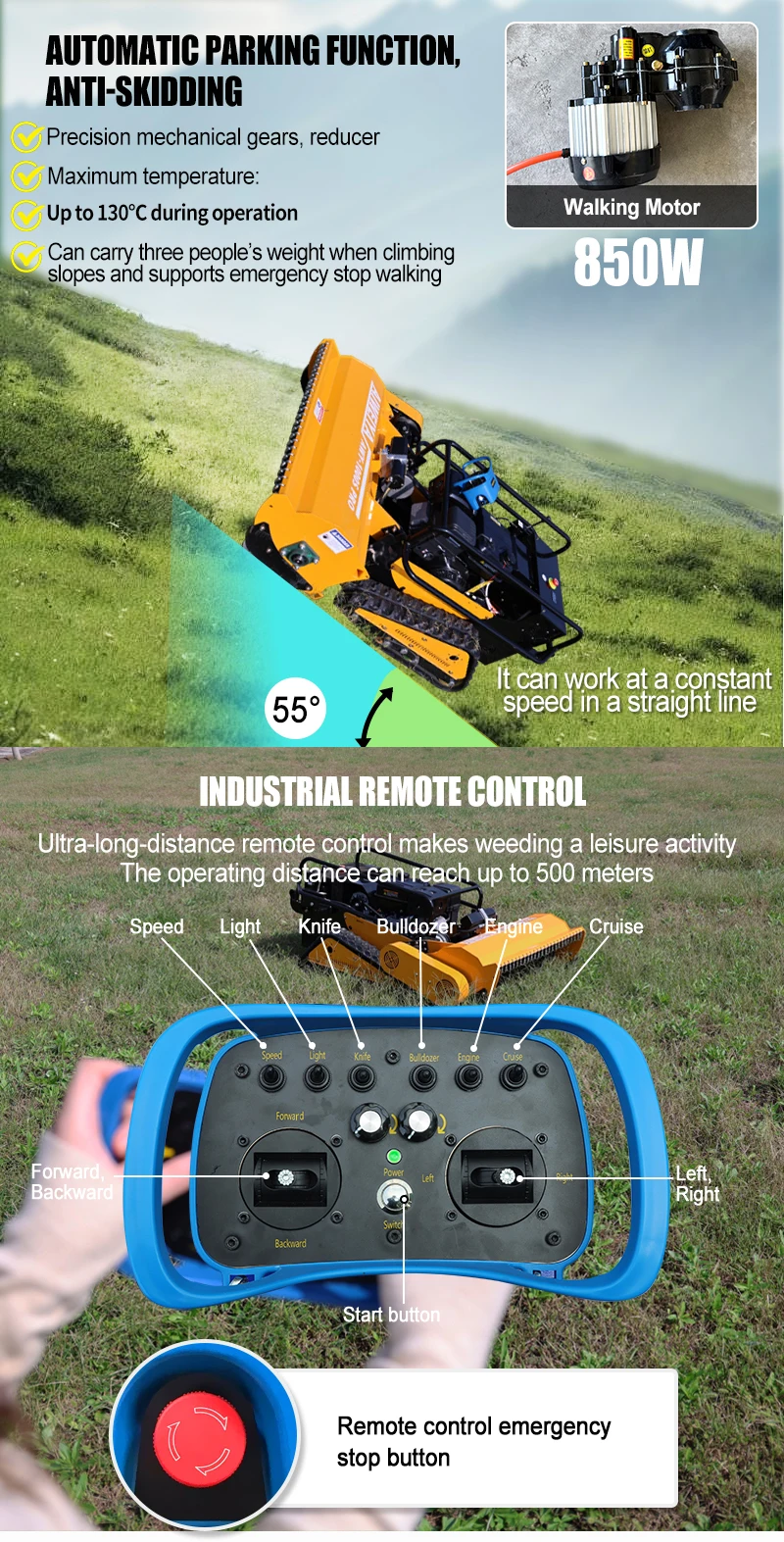 Tosaerba modello diesel e a benzina di alta qualità personalizzato in Cina con robot da taglio automatico per prato fuoristrada remoto fuoristrada