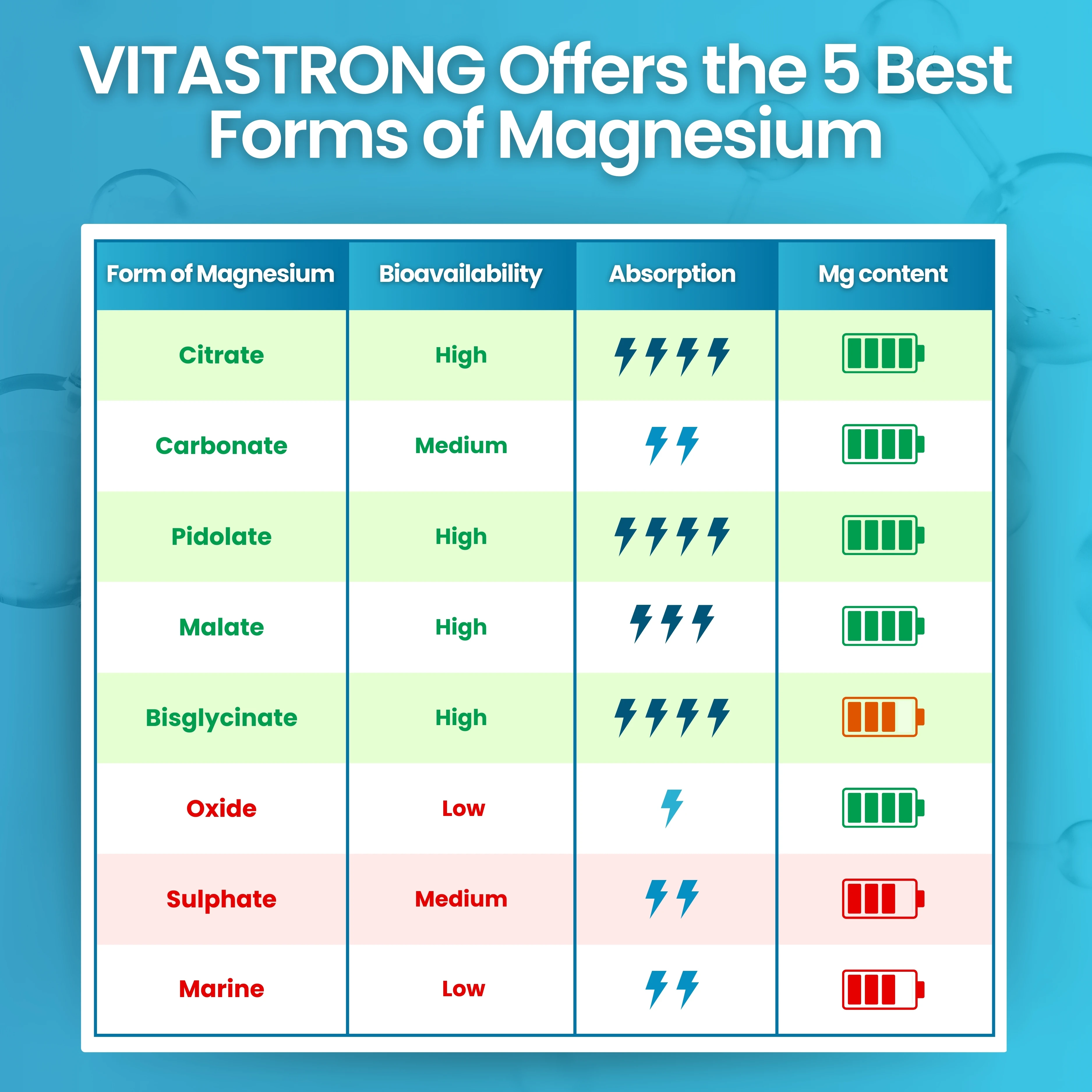 Vitastrong Magnesio Complex 400mg – 5 in 1 Magnesio – Magnesio Bisglicinato + Magnesio Citrato + Magnesio Pidolato + Malato e Carbonato – Integratore Magnesio Antistress