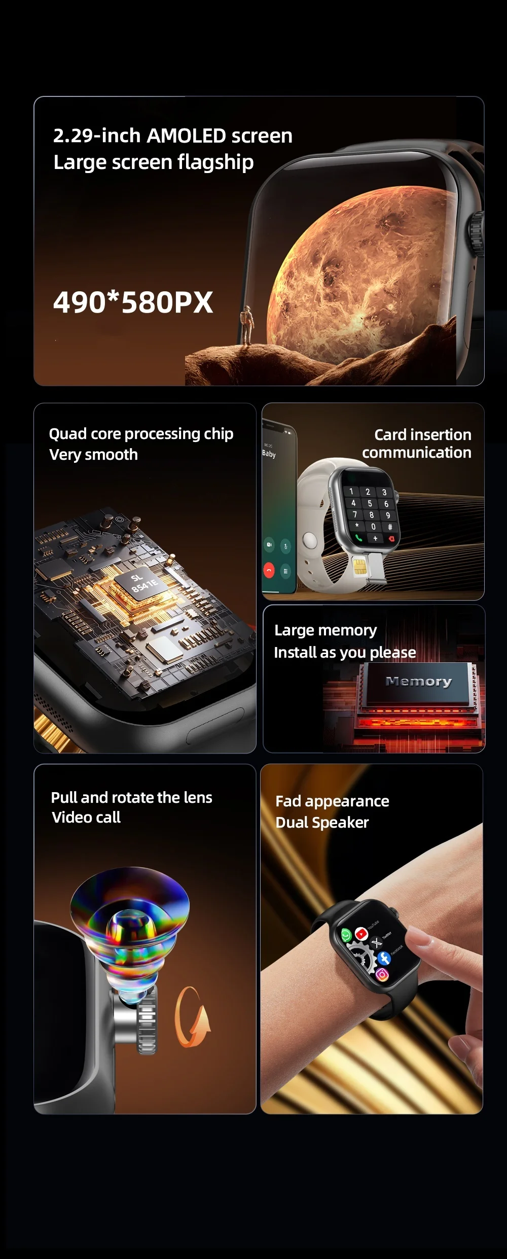 Ampio schermo Amoled HD da 3, 2,29 pollici, alta risoluzione 490 * 580, consumo energetico estremamente basso, cornice estremamente stretta, rapporto schermo ultra alto, divertimento visivo diverso