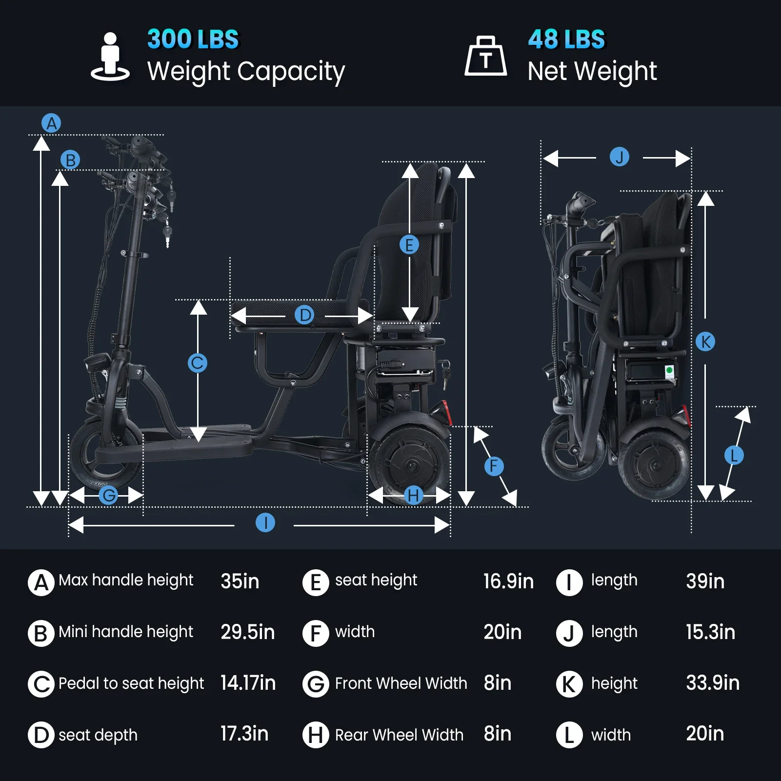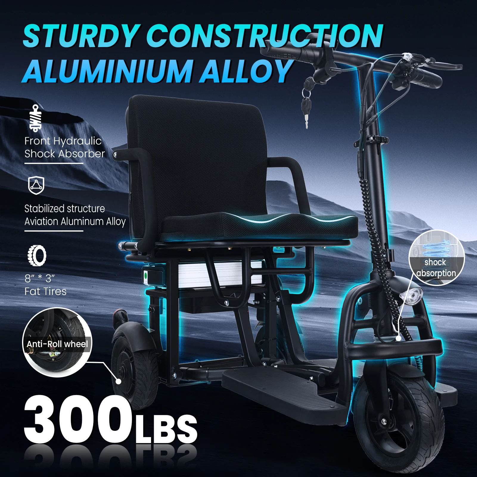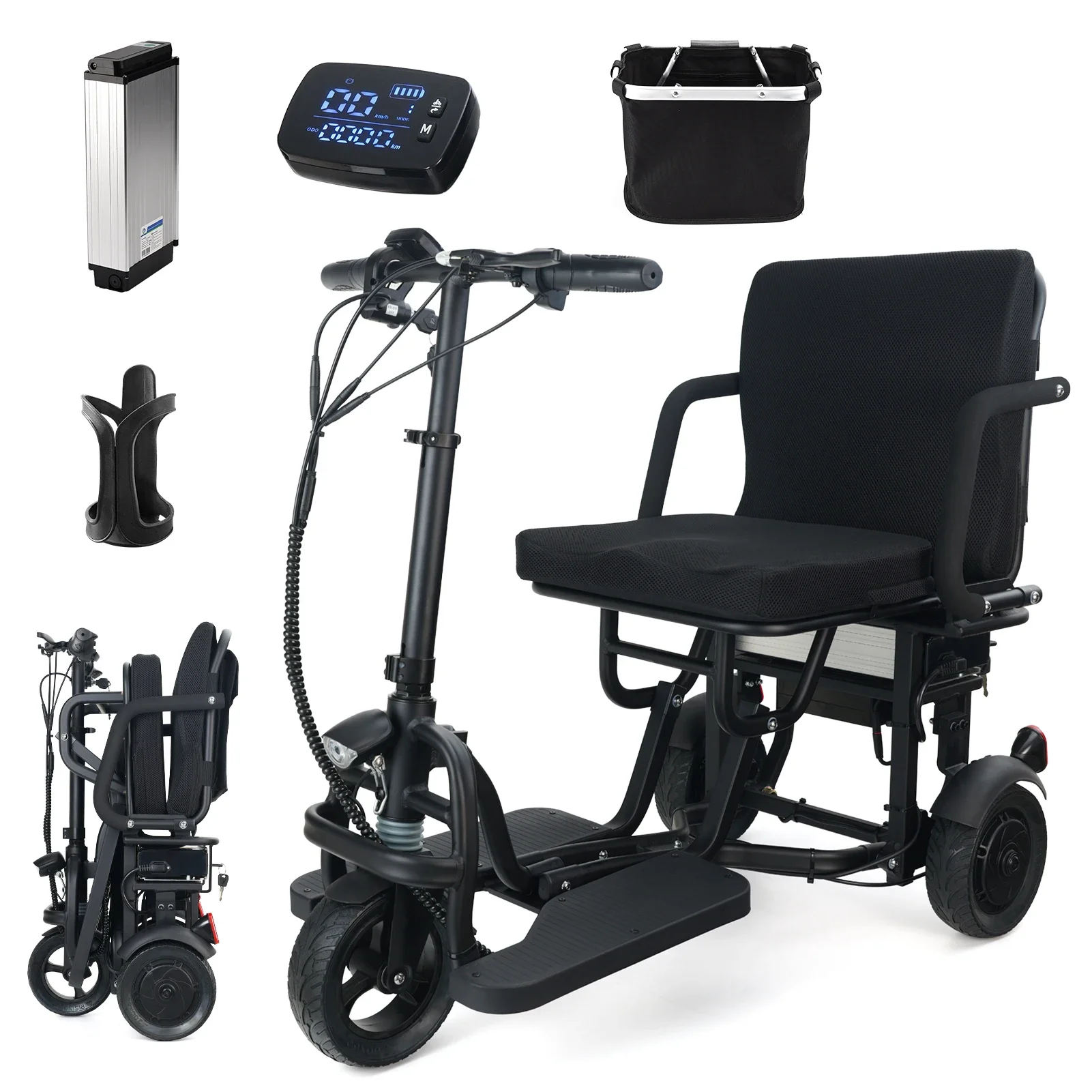 WEYRAL C36 VT Sedia a Rotelle Elettrica Pieghevole per Adulti e Anziani, Motore 300W, 36V 8Ah, Sedia a Rotelle Elettrica Tutto Terreno 8*3