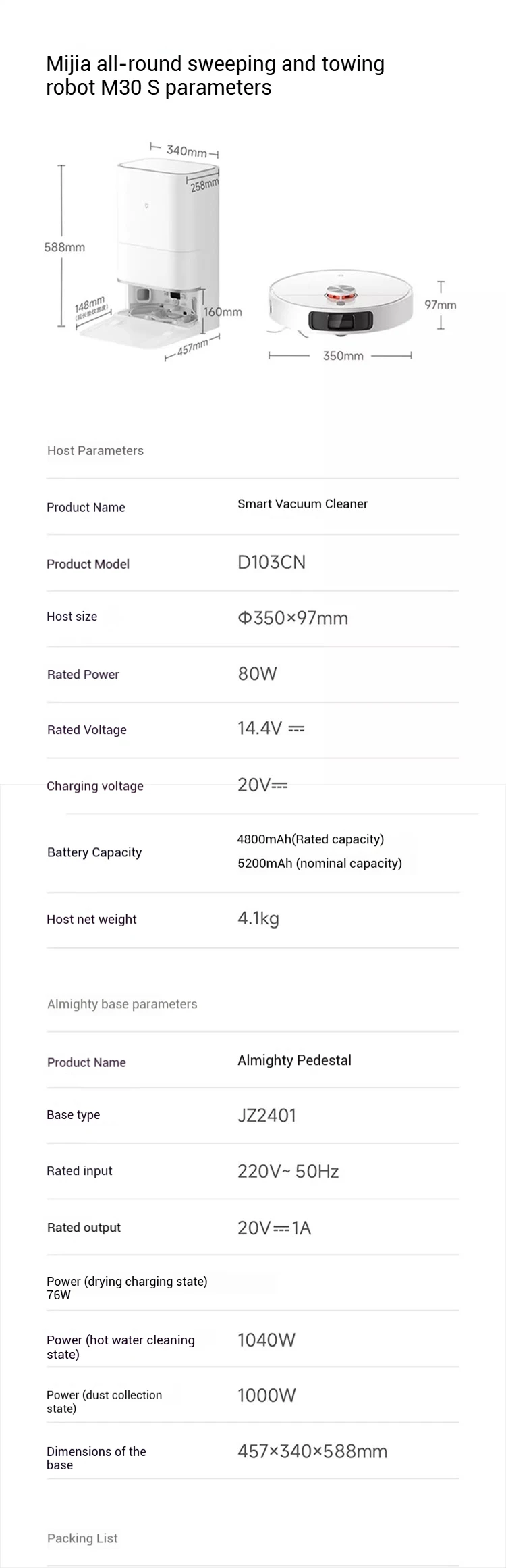 XIAOMI NORMA MIJIA M30S OMNI Infinite Robot MOP Aspirapolvere D103CN Polvere Vuota Casa Smaltimento di Sporco Macchina Autopulente Taglio Dei Capelli