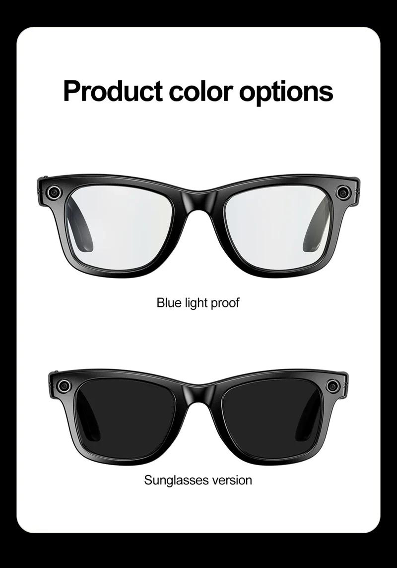 Occhiali intelligenti alla moda per scattare foto e registrare video AI: riconoscimento foto A1, risposta alle domande, scattare foto, registrare video, interazione di dialogo AI, chiamate Bluetooth, riproduzione musicale locale (commutazione, musica in pausa), chip di controllo principale W20 a basso consumo energetico, lunga durata della batteria, doppi pulsanti fisici e doppi pulsanti a sfioramento per un funzionamento conveniente, peso complessivo leggero da 35 g per un uso confortevole, occhiali da sole personalizzabili, protezione dalla luce blu, miopia e altri obiettivi, capacità Integrato con il modello avanzato di ChatGPT, elevata precisione nel riconoscimento delle immagini.